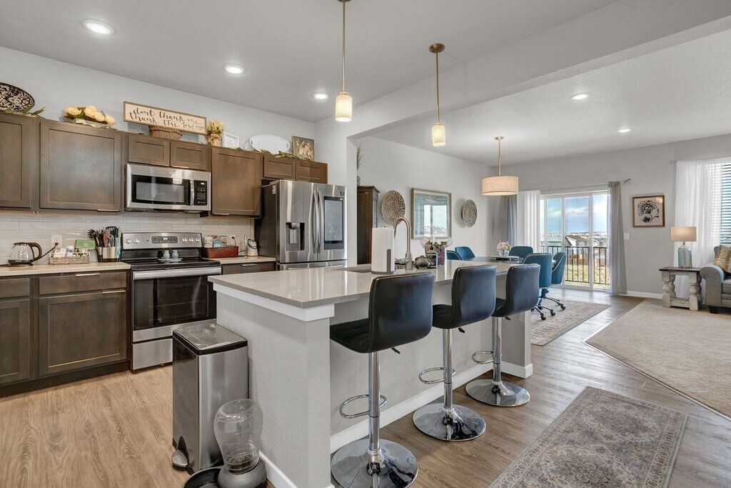Stellar new townhome on the east side of Colorado Springs. Very spacious with open concept kitchen dining and living. large two car attached garage. As you walk in you'll be greeted by a large kitchen with Quartz Kitchen counters and stainless steel appliances. Modern design inside and out makes for a seamless lifestyle. Walk out to the deck and enjoy a stunning view of pikes peak and a perfect way to end any day watching the sun set. Upstairs there is a private living space that could be used for an office or a quiet place for reading and it's conveniently placed close to the Primary Bedroom. From the Walk-in closet to the masterfully done shower this Primary bedroom fits any type of lifestyle. To really make this a perfect place to call home you can't leave out the basement which offers yet another entertaining space that allows for outdoor living with a walk-out sliding glass door. Tenant pays all utilities. First month's rent and security deposit at signing. No smoking allowed. 2 pets max with no aggressive breed. 12 month lease. A prospective tenant has the right to provide to the landlord a portable tenant screening report, as defined in section 38-12-902(2.5), Colorado Revised Statutes; and if a prospective tenant provides the landlord with a portable tenant screening report, the landlord prohibited from: Charging the prospective tenant a rental application fee; or Charging the prospective tenant a fee for the landlord to access or use the portable tenant screening report.