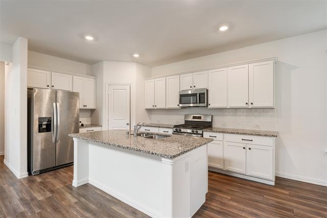 Tucked away in the heart of Garland, is this barely lived in, 2-story brick & stone home! As you step inside, you're greeted by soaring ceilings leading into a spacious family room adorned w-plank HW floors. The open-concept layout seamlessly flows into the gorgeous kitchen, featuring an elongated granite island, gas cooktop, SS Apps, pristine white cabs, a subway-tiled backsplash + a generously sized pantry. Light-filled dining room, w-its double walls of windows, is perfect for enjoying meals w-a view. Two half baths! Primary suite, tucked away at the back of the home for added privacy, boasts an en-suite bath! Upstairs, a large game room awaits, ideal for a pool table or other recreational activities. The 2nd floor also features 3 well-appointed guest bedrooms, each w-WIC + en-suite baths. Family-friendly floor plan offers plenty of space & versatility. In the evenings, unwind under the covered patio overlooking the cozy backyard, creating the perfect setting for relaxation.