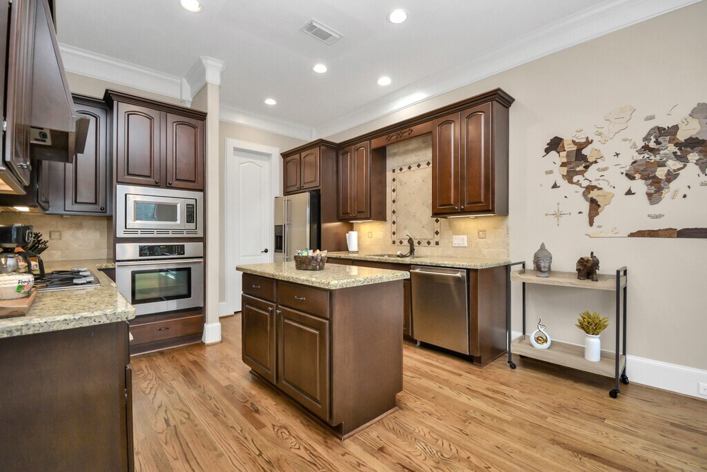 Location,location,location! This beautifully upgraded freestanding home is perfectly situated in the heart of Rice Military,offering easy walkable and bikeable access to Memorial Park,Washington Avenue,The Heights,and Downtown Houston. Nestled within an exclusive,fully gated community,the home features a private bedroom with en-suite bathroom on each floor,ideal for guests or roommates and offering ultimate privacy. Interior highlights include wood flooring,custom trim work,soaring ceilings,and granite countertops. The gourmet kitchen is outfitted with top-of-the-line appliances and double ovens,perfect for entertaining. Additional features include energy-efficient HVAC and water heater systems,backyard patios on both the first and second floors,and an oversized flex/game room adjoining the third-floor primary suite. MLS# 70241785