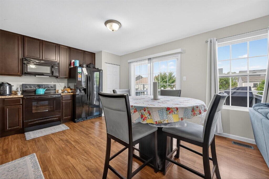 Welcome to this move-in ready ranch in Preston Woods. The exterior features a composite deck with steps leading to a fully wrought-iron fenced backyard and patio, ideal for outdoor living. Inside, laminate flooring runs throughout the main level living areas. The open-concept floor plan includes a living room that flows into the kitchen, complete with 42†espresso cabinets and pantry. The main floor master suite offers a walk-in closet. Two additional bedrooms, a full bathroom, and a laundry room complete the main level. The lower level provides additional living space with a large recreation room that is two-thirds finished, a full bathroom, a bonus room, and ample storage. Residents will also enjoy access to neighborhood amenities, including a community pool. This property combines comfort, functionality, and community living in one.
