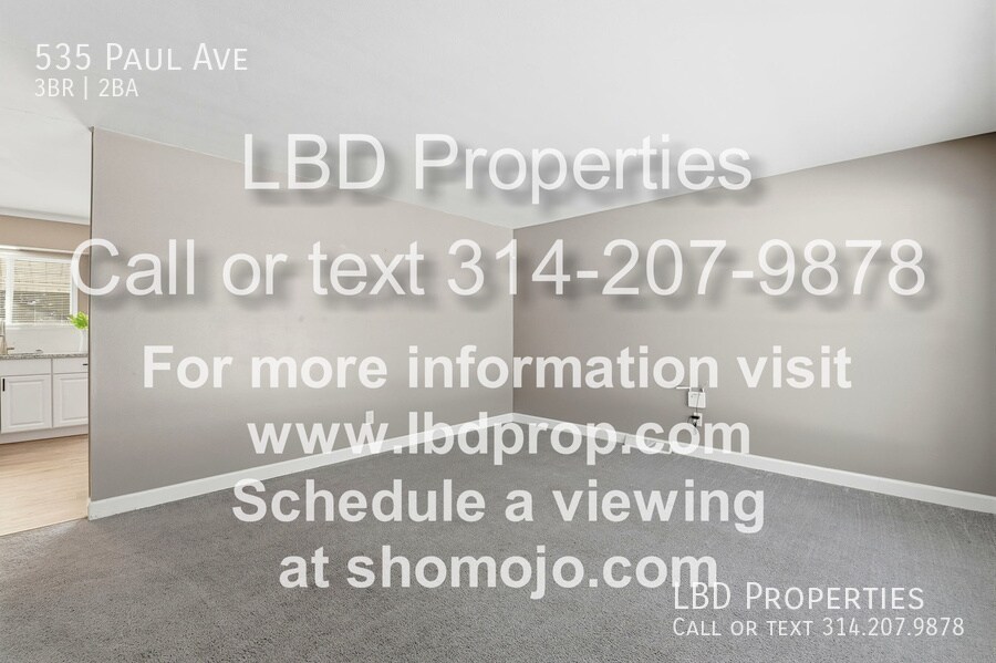 Welcome home! This beautifully newly rehabbed 3-bedroom, 2-bath single-family house is now available for rent in Florissant, MO! Featuring fresh updates throughout, this home offers a modern feel with comfortable living space. Home Features: **3 spacious bedrooms. **2 full bathrooms. **Newly updated kitchen and bathrooms. **Fresh paint, updated flooring, and fixtures throughout! **Bright, open living areas with plenty of natural light. **Washer/dryer hookups. **Conveniently located off Lindbergh near shopping, dining, parks, and major roadways, this home offers both comfort and accessibility. Rental Terms: -Monthly Rent: $1,675.00. -Security Deposit: $1,675.00. -No prior evictions or evictions filed in court accepted. -Pets accepted! $250.00 non-refundable security deposit plus $25.00 per pet monthly fee. -Sorry, Section 8 not accepted at this time. Important Information: *We DO NOT list our properties on Craigslist, Facebook Marketplace, LetGo, or other classified ads services. *One-year leases are available exclusively through LBD Properties. *We never ask for payments via third-party apps such as Venmo, PayPal, Zelle, etc. *The security deposit is due at the time of lease signing. *Rent is due the day you move in. *We will never ask for money before your application is approved! Protect Yourself from Rental Scams Please remain vigilant and report any suspicious listings to us immediately. Contact us today to make this charming home yours! To schedule a showing please visit Showmojo. We only have self showings. For more details, please visit our website listed on the pictures of the property. All real estate advertised herein is subject to the Federal Fair Housing Act. We do not discriminate based on race, color, religion, sex, disability, familial status, national origin, or any other protected class under applicable law. All dwellings are available on an equal opportunity basis.