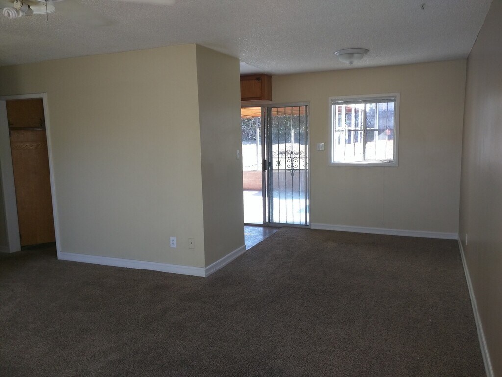 Three bedroom, one bath home near the 125 and Jamacha Rd. Property will be painted and new hard surface flooring installed. The kitchen includes a fridge and stove. There is plenty of room for off street parking in the long driveway to the detached 1 car garage. Washer/dryer hookups on screened-in patio. Large fenced yard. Tenant pays all utilities 1 Year lease Deposit is $3100 Pets on approval with additional deposit. No pet rent. Combined monthly household income to be about 2.5 rent = $7700 Tenant to carry renters insurance or will be charged $10.50/mo for a liability only policy. Updated pictures coming soon. The photos without flooring are current. Kitchen 5'11" x 10'4" Dining 8'6" x 8'2" Living Room 13'10" x 15'9" Left bedroom 13'5" x 9'0" Center Bedroom 11'2" x 12'7" Right Bedroom 11'4" x 11'4" Covered Patio 19'6 x 13'8
