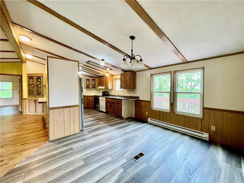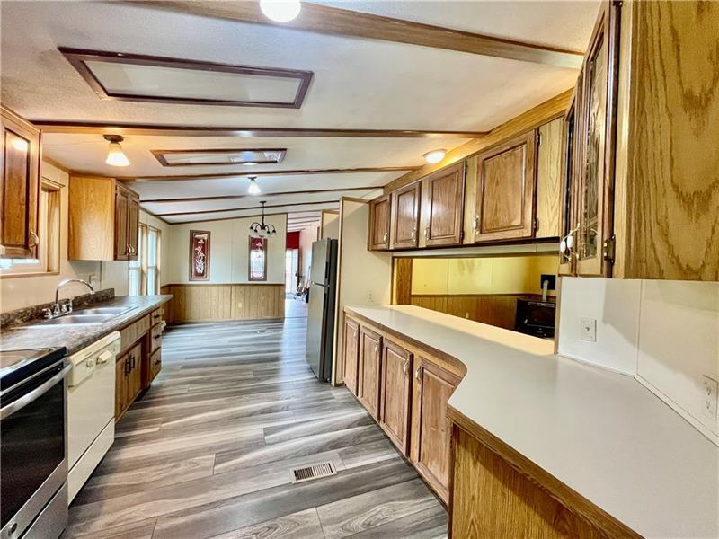 This double-wide home offers an optimal combination of comfort and space, making it suitable for both families and individuals. The model features three well-appointed bedrooms, alongside two full bathrooms. A notable aspect of this home is the open floor plan, which facilitates a seamless flow between the living, dining, and kitchen areas, thereby promoting a sense of connectivity and spaciousness. This configuration is ideal for hosting guests or spending quality family time. The kitchen is equipped with modern appliances, generous counter space, and a large island designed for meal preparation. The adjacent dining area provides an excellent setting for family meals and gatherings, accommodating a sizable dining table with ease. Additionally, the property features a spacious deck. ***NO PETS ***Public water and septic. The tenant is responsible for having the septic tank pumped annually.