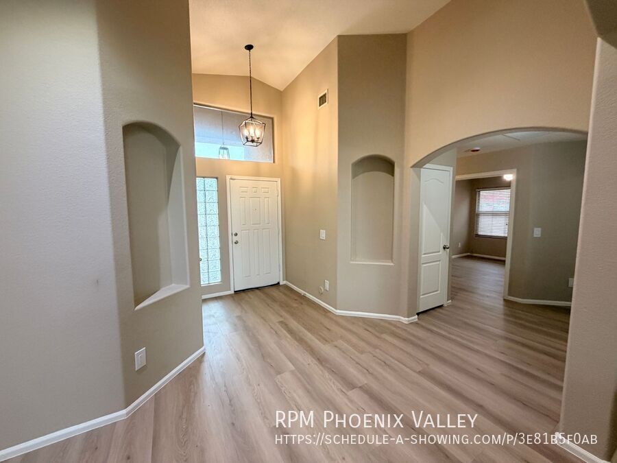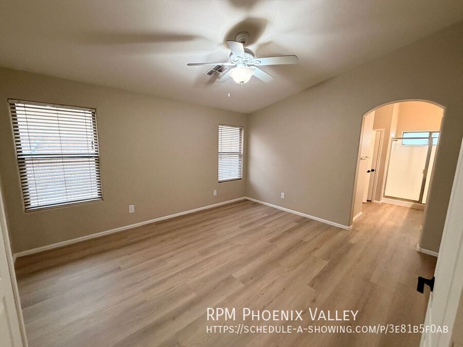 Discover modern, low-maintenance living in this stunning single-level, 3-bedroom, 2-bathroom residence. Recently renovated, the home boasts new gray wood plank flooring throughout, eliminating all carpet, complemented by custom tan paint and elegant decorative archway cutouts giving a modern touch. The versatile layout features a dedicated formal living room in addition to a highly sought-after open-concept great room, perfect for entertaining. The large kitchen is the heart of the home, equipped with plenty of counter space, full appliance package, a large center island, and a convenient pantry. Retreat to the luxurious primary suite, which includes a generous walk-in closet and an en-suite master bath featuring dual sinks, large shower, a private toilet room and a door leading to the backyard. Two additional generously sized bedrooms share a hallway bathroom. Amenities include ceiling fans in each room, washer/dryer and a 2 car garage. Enjoy true outdoor living with a big, grassy backyard and mature landscaping, offering plenty of space for recreation and relaxation. RT-101 is close by which makes this home perfect for commuting. Home is friendly to a max of two spayed/neutered pets with $350 per pet fee. We do not list on CRAIGSLIST OR FACEBOOK MARKETPLACE SO IF YOU SEE IT ON THERE IT IS A SCAM $50.00 non-refundable application fee covers per adult; age 18 or over. Full security deposit of $1,899. Move in date must be between 7 & 30 days from lease signing/payment of security deposit. If moving in on or after the 5th then pro-rated current month rent is due as well as the following full month. All rent is due 7 days prior to move in. 2 Car Garage Fridge Range/Stove Sprinklers Washer/Dryer In Unit