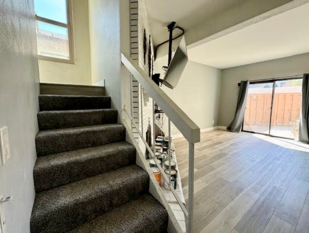 This Beautiful property is located in the heart of La Mesa. Located only minutes away from parks, restaurants, Cowles Mountain, and major freeways close by! Downstairs you'll find a bright and airy kitchen, spacious living room with a fireplace, a half bath for convenience, and a large enclosed private patio for entertaining. Pantry and storage rooms! Central AC! Head upstairs to find a hall bathroom, a large primary bedroom with vaulted ceilings, and a walk-in closet! Balcony overlooks the community space below. Two car garage, guest parking, community pool and hot tub, and a home to call yours! Give us a call to make an appointment for you to view this beautiful home.
