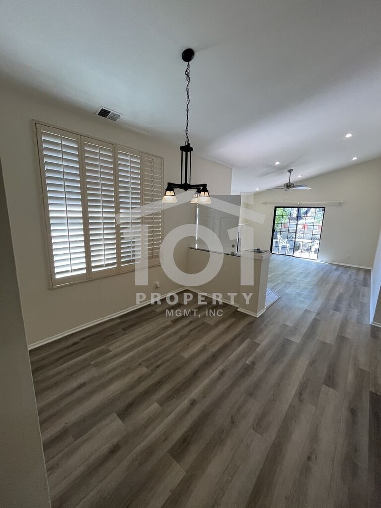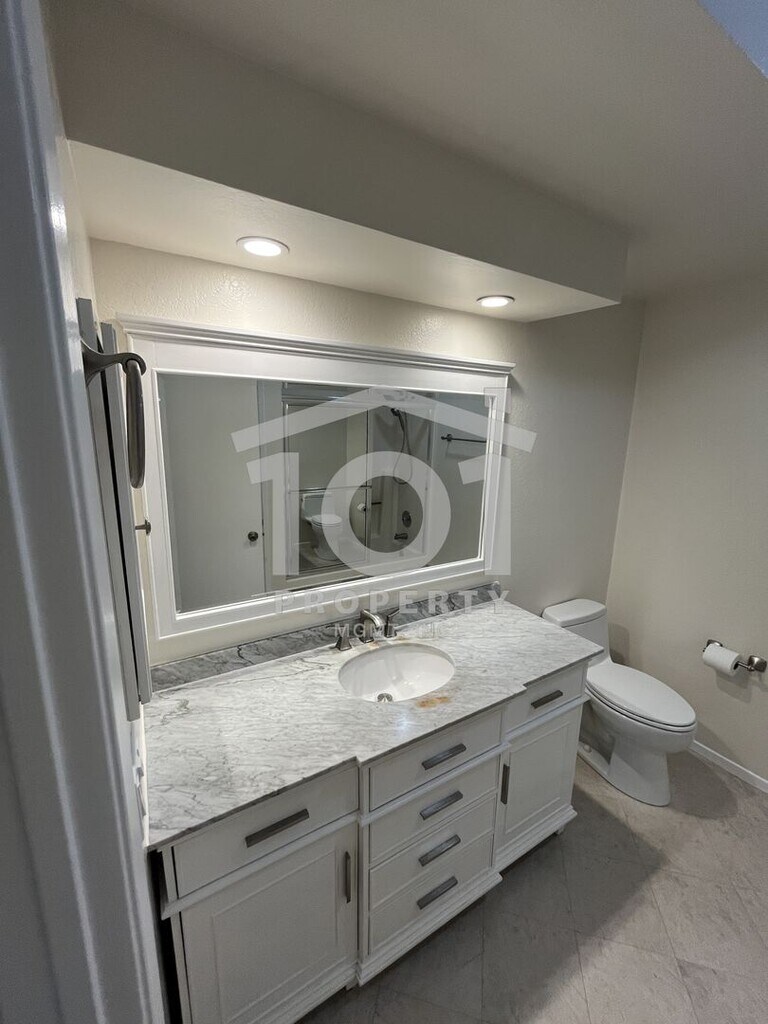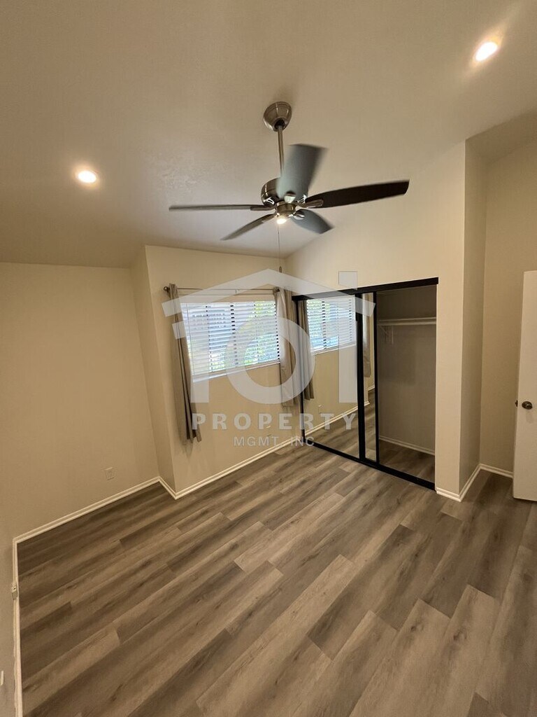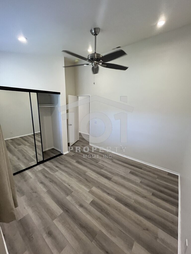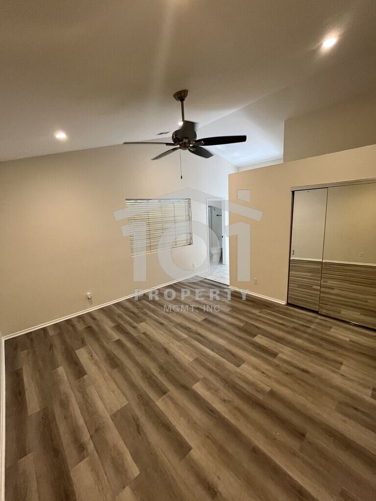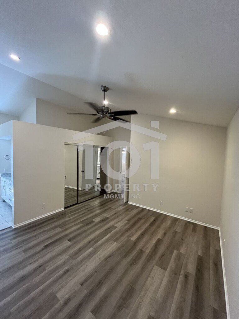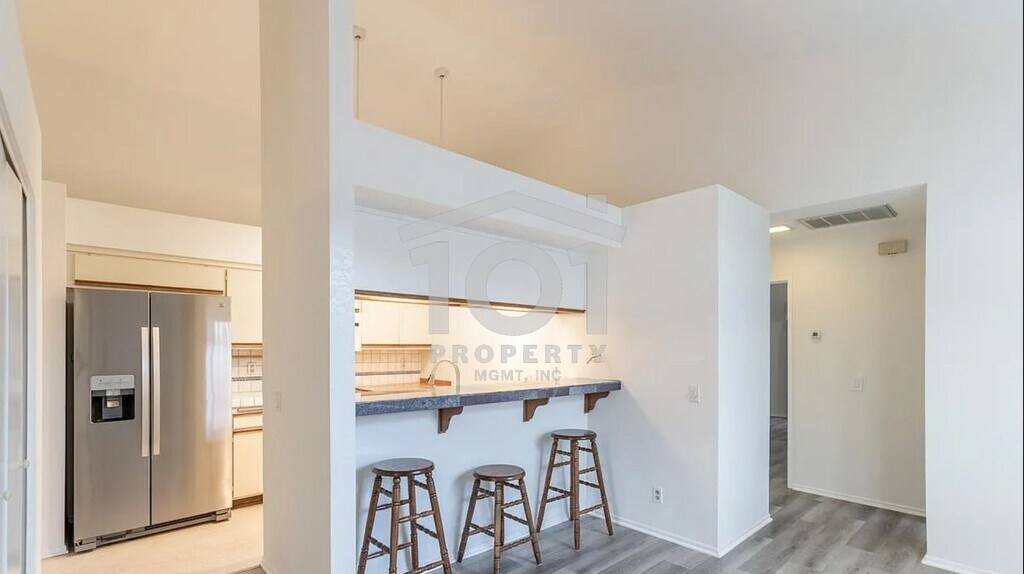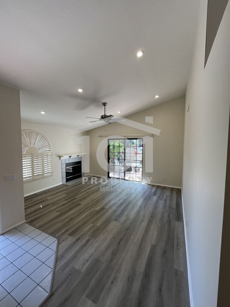 Tucked beneath mature trees and surrounded by beautifully landscaped grounds, this inviting single-level 2-bedroom, 2-bath condo sits in the highly sought-after Sunrise Village community—just moments from Kellogg School. Step inside to discover vaulted ceilings and a spacious open floor plan, complemented by brand new luxury vinyl plank flooring and fresh paint throughout. The kitchen, dining area, and living room—anchored by a cozy fireplace—blend effortlessly, creating a bright, welcoming atmosphere. Sliding doors lead to a private, walled patio that’s ideal for relaxing or tending to your favorite potted plants. The primary bedroom boasts its own full bathroom and access to a second private patio—a perfect spot for morning coffee or quiet evenings. A roomy second bedroom and another full bathroom complete the thoughtfully designed layout. Enjoy the convenience of an attached single-car garage with extra storage, an in-unit washer and dryer, and an assigned outdoor parking spot. Sunrise Village residents also enjoy access to a sparkling community pool, playground, tennis court, and BBQ area—offering plenty of opportunities to relax and connect with neighbors. This move-in-ready home is waiting for you! Tenant pays all utilities; the gardener service is included in the rent. Renter’s insurance required. Professionally managed by 101 Property Mgmt, Inc.