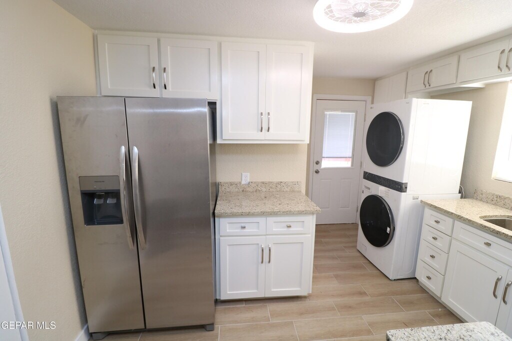Welcome to this beautifully renovated gem in the heart of El Paso! This charming 3 bedroom 1 bath home has been fully remodeled inside and is move in ready for tenants. Enjoy fresh modern living with brand new tile flooring throughout,new interior paint,and elegant base moldings that bring a clean finish. The kitchen has been updated with new cabinet doors,granite countertops,new appliances,a modern garbage disposal,and a brand new washer and dryer set included. Every detail has been improved from the new ceiling fans to the remodeled bathroom with updated fixtures and finishes. Located just 6 minutes from the Bridge of the Americas for easy access to Juarez,and with excellent connectivity to the I 10 freeway,this home is close to shopping,schools,and dining. A great opportunity for a comfortable lease in a convenient location. Contact us today for leasing details and to schedule a showing.
