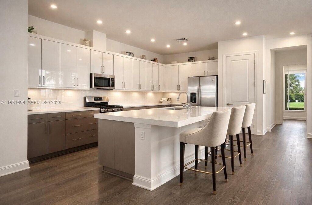 Located in the desirable Cresswind Palm Beach 55+ community, this 2022-built home sits on a large 8,285 sq ft lot—one of the larger lots in the community. The home offers 3 bedrooms plus ahome offers 3 bedrooms + den, 3 bathrooms, 3-car garage. Open layout with a premium model-home kitchen (same design featured in the community catalog) including quartz countertops, gas cooktop, soft-close cabinetry, and oversized island. Tile flooring throughout, impact windows, and modern finishes. A rare opportunity to own a new home with top-tier upgrades in one of the community’s most desirable sections. MLS # A11981698
