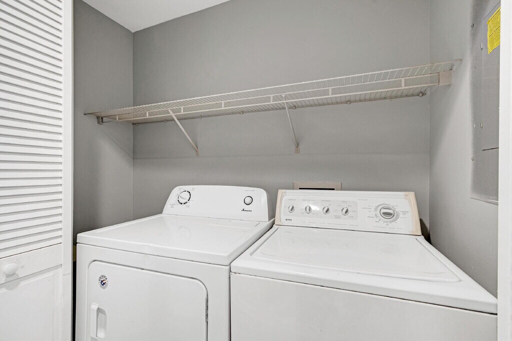Enjoy one level living at this 2 bedroom 2 bath home. Spacious living room with dedicated dining area. LVP flooring throughout & built in bookshelves. Primary suite includes private bathroom. Down the hall find the secondary bedroom and full bathroom. Washer/Dryer included in home.