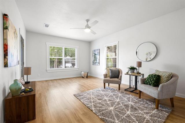 Elegant 3-bedroom, 2-bath residence featuring a covered carport, mature shade trees, and an inviting oversized front porch perfect for morning coffee or evening relaxation. Thoughtfully renovated throughout with luxury vinyl flooring, fresh designer-inspired paint, and sophisticated modern finishes. The gourmet kitchen showcases brand-new appliances, abundant cabinetry, and a functional layout ideal for both everyday living and entertaining. The spacious primary suite includes a spa-inspired bath with a double vanity for added comfort and style. Expansive windows throughout the home invite an abundance of natural light, creating a bright and airy ambiance. Step outside to a generously sized backyard offering endless possibilities for outdoor entertaining and private enjoyment. Garage is not included with property. Contact Christin at .