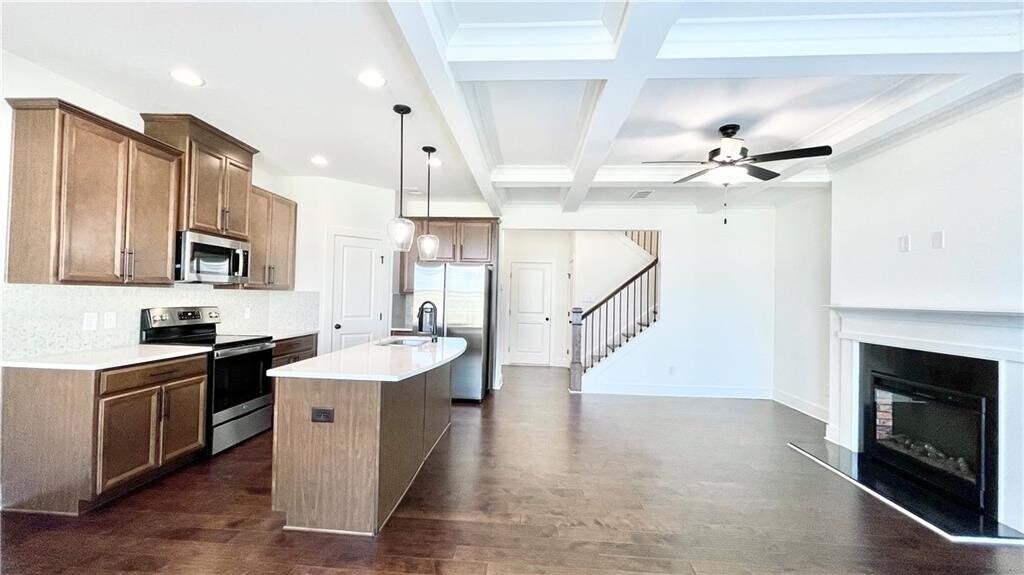 Enjoy an abundance of natural light in this beautiful 3 bed,2.5 bath townhome. The second floor features a spacious loft that can serve as a second living room,office,or versatile space. The home includes a 2-car garage and a driveway accommodating 2 additional cars. The main level boasts an open-concept floor plan with a kitchen equipped with beautiful granite countertops,dark cabinets,and stainless steel appliances,including a side-by-side refrigerator. Hardwood floors extend throughout the main level,while the upper level features cozy carpeting. The master bath offers a separate tub and shower,double vanity,and a walk-in closet. There are two additional spacious bedrooms on the upper level. The fully fenced yard is perfect for pet owners,and lawn care is maintained by the HOA. Located in a beautiful new community in Lithonia,this townhome is conveniently near shopping,grocery stores,and I-20,right off Covington Highway. Don't miss this opportunity—take the virtual tour today!