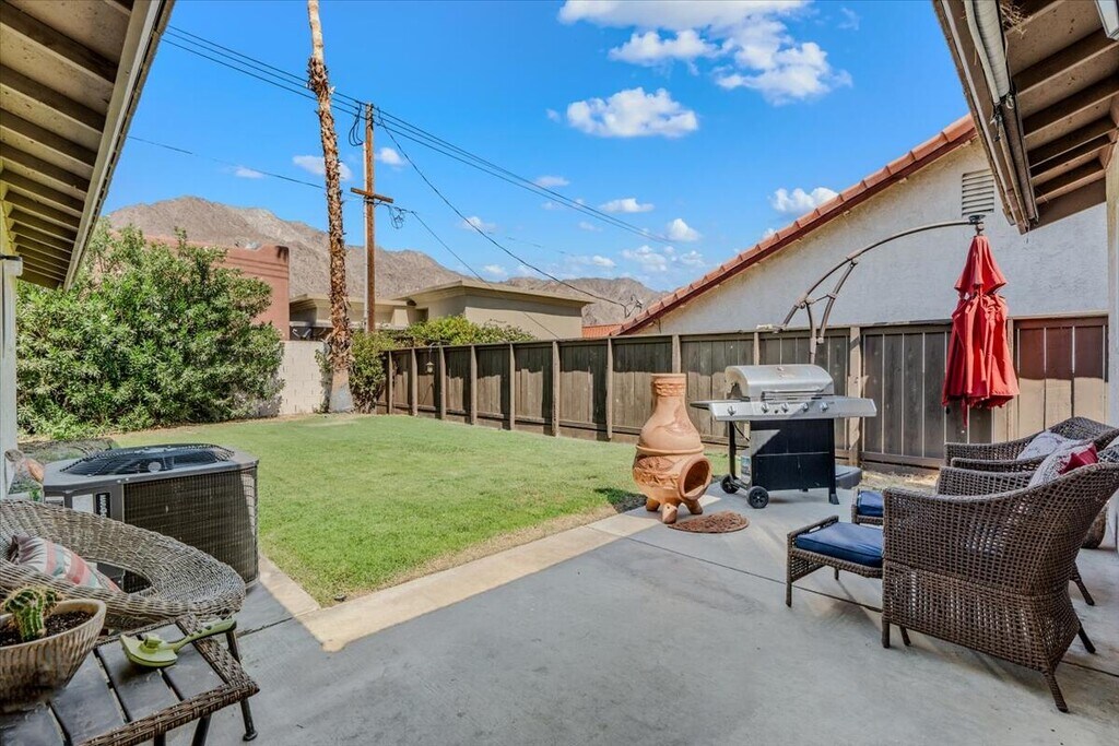Experience the warmth and character of this beautifully updated 3-bedroom,2-bathroom rental home located in The Cove in La Quinta,one of the desert's most desirable neighborhoods. With breathtaking mountain views and a prime location just minutes from Old Town La Quinta's dining and shopping,world-class resorts,golf courses,the Empire Polo Fields,and the Indian Wells Tennis Garden,this home offers the best of Coachella Valley living. From the moment you arrive,the property welcomes you with manicured landscaping,a classic tile roof,and brand-new windows that enhance both style and efficiency. Inside,the cozy living room features a striking stone fireplace and new flooring throughout,creating an inviting space to relax and unwind. The remodeled kitchen boasts elegant cabinetry,modern finishes,and plenty of storage. The generously sized primary suite is a true retreat with a remodeled bathroom and a spacious tile walk-in shower. Saltillo tile details add timeless charm throughout the home,while features such as indoor laundry and direct garage access provide convenience. Outdoors,enjoy a private backyard with grassy areas perfect for kids and pets,framed by stunning mountain views. The combination of thoughtful updates,desert charm,and a location that connects you to everything the Coachella Valley has to offer makes this La Quinta Cove gem truly special. Schedule a private showing today.