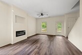 2 bedroom, 1.5 bath, two story duplex. Spacious living room with wood floors and fireplace. Kitchen is equipped with oven/stove, dishwasher and refrigerator. Private front porch and balcony. Pet friendly.