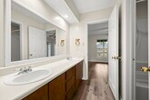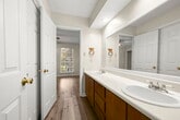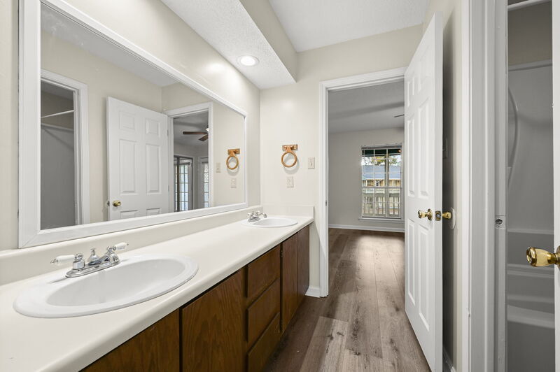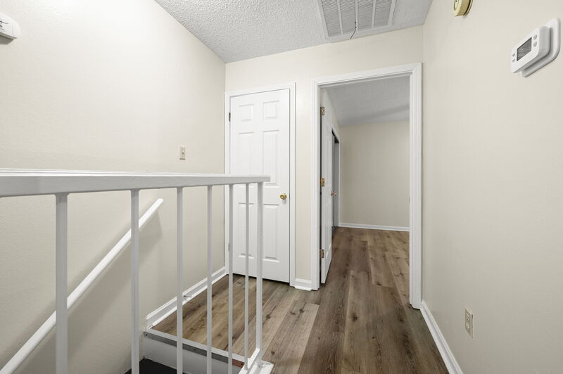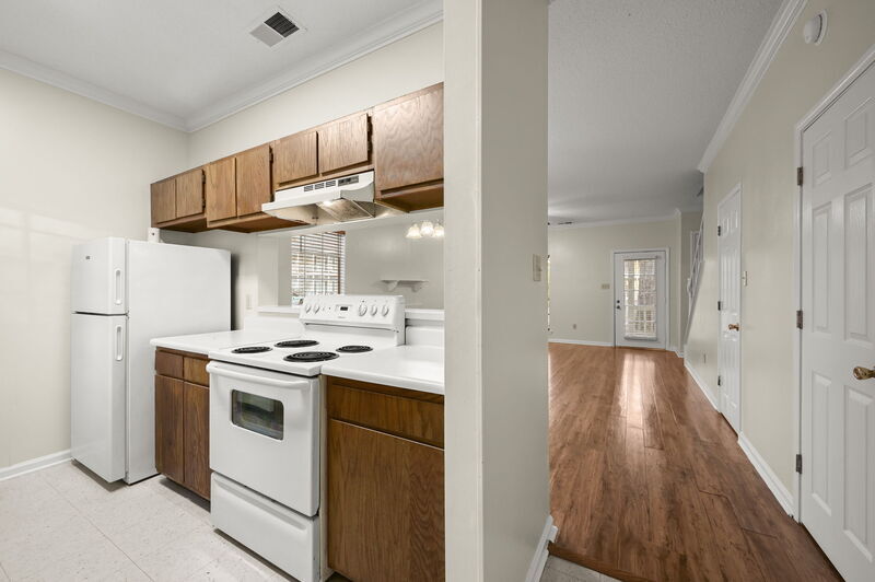 2 bed/1.5 bath duplex with beautiful wood floors. Kitchen is equipped with oven/stove, dishwasher and refrigerator. Double sink vanity in master bathroom. Private front porch and balcony.
