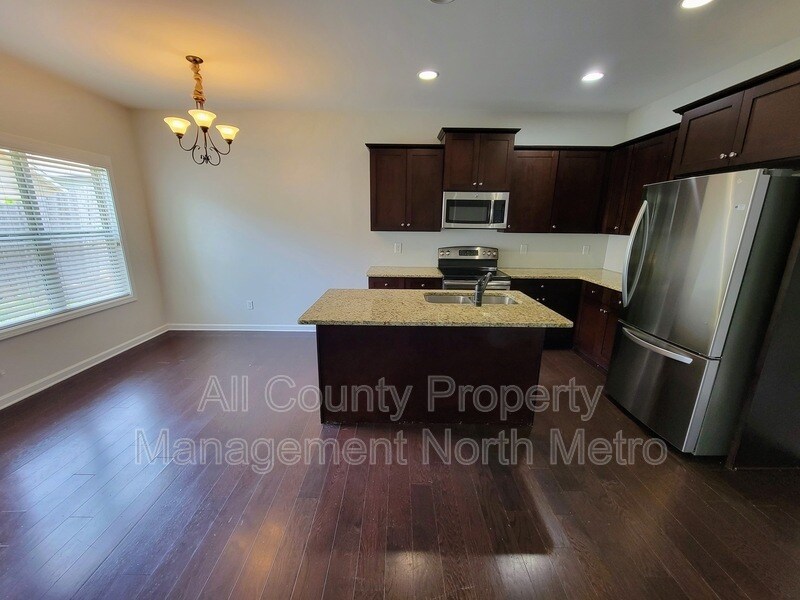 Welcome to this wonderful 4-bedroom, 2.5-bathroom home, perfectly situated in the back of a highly desirable Canton neighborhood. This residence offers a fantastic open-concept layout, perfect for living and entertaining. The heart of the home is the kitchen, boasting granite countertops. It flows seamlessly into the main living area, creating an ideal space for gathering with family and friends. Upstairs, you'll find the spacious master suite, complete with a generous walk-in closet and a private ensuite bathroom. Three additional bedrooms and a full hall bath provide plenty of space for everyone. For your convenience, laundry hookups are also located on the upper level. The backyard is fully fenced-in for privacy and features a lovely grilling patio. This home offers the best of both worlds: a peaceful retreat with incredible convenience. You'll be just minutes away from local shops, delicious restaurants, and scenic hiking trails. Pets: We will accept one small pet under 25 lbs.! Ready to make this beautiful house your new home? Schedule your self-guided tour today! Locally & professionally managed by All County Property Management North Metro, which offers a streamlined leasing process with self-guided tours available.