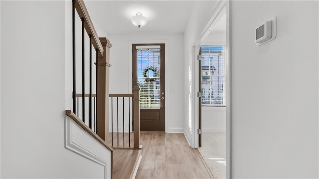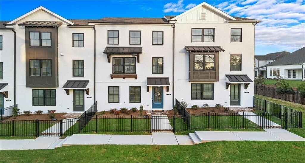 This nearly new,beautifully designed townhome is located in the highly desirable Market Square at Sawnee Village in Cumming and offers 3 bedrooms and 3.5 bathrooms across three thoughtfully designed levels that is perfect for comfortable living,working and entertaining. The terrace level features a private ensuite ideal for guests,a home office or a flex space. On the main level,you will enjoy an open-concept layout with a bright and airy family room,dining area and a chef-inspired kitchen complete with 42” white cabinetry,quartz countertops and stainless-steel GE appliances. Rich hardwood floors run throughout,leading to a spacious deck that is perfect for relaxing or hosting guests. Upstairs,the third level boasts a spacious primary suite with a walk-in closet and a modern double-vanity bathroom featuring a walk-in shower. A generously sized secondary bedroom also includes its own private bathroom and walk-in closet. For added convenience,the laundry room comes equipped with a full sized washer and dryer. This home also includes a 2-car rear-entry garage with an EV charging outlet and is Energy Star certified,featuring a tankless gas water heater,high-efficiency HVAC system and programmable thermostats for enhanced energy savings. Enjoy a walkable lifestyle with easy access to future retail,dining,green spaces and parks. Located just one mile from Cumming City Center,you will be close to the amphitheater,walking trails,shops and restaurants,with quick access to GA-400,The Collection at Forsyth and Alpharetta destinations like Halcyon and Avalon. If you are looking for modern design,low-maintenance living and unbeatable convenience,contact Janice today to schedule your private tour. MLS ID 7745335