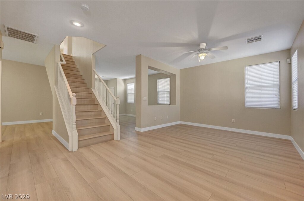 Now available for rent in the heart of Summerlin South, this beautifully appointed 3-bedroom, 2.5-bath home wth spacious loft and den offers comfort and style in a thoughtfully designed floorplan. The airy living room, family room, and dining area feature abundant natural light and ample space, perfect for relaxing or entertaining. The gourmet kitchen includes a gas oven/cooktop, new french door stainless fridge, walk-in pantry, and plenty of space for meal prep! This home showcases brand-new high quality plank flooring throughout, as well as plush carpeting in the bedrooms upstairs for warmth and comfort. The spacious primary suite offers dual vanities, a walk-in closet, and privacy. Enjoy desert landscaping and turf, lush trees, and a gated courtyard entry. Freshly painted exterior and interior, two-car garage, and generous storage complete this exceptional opportunity! Rental price includes trash sewer and quarterly landscaping.