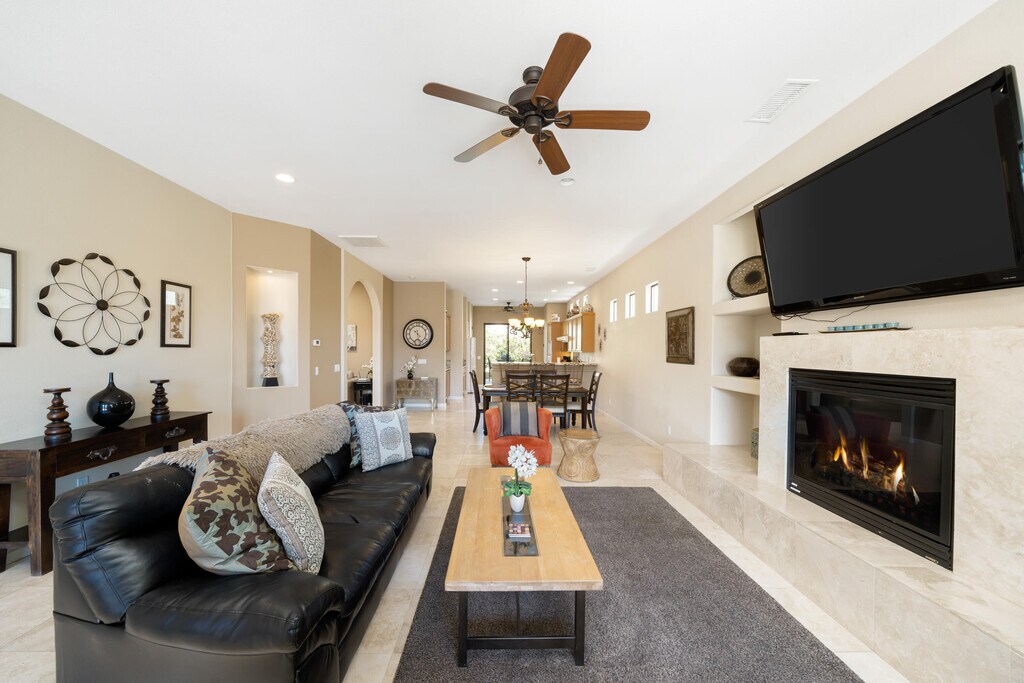 Stunning Santa Fe within walking distance of the world renowned Fred Wolf walking and hiking trails! Step into the courtyard and you will be greeted with a refreshing pool and spa. Stylish and immaculate home with an open and airy floor plan. Fully stocked with every amenity for a perfect and relaxing vacation. Close to Old Town La Quinta with dining and shopping galore. Bring your swimsuit and enjoy!