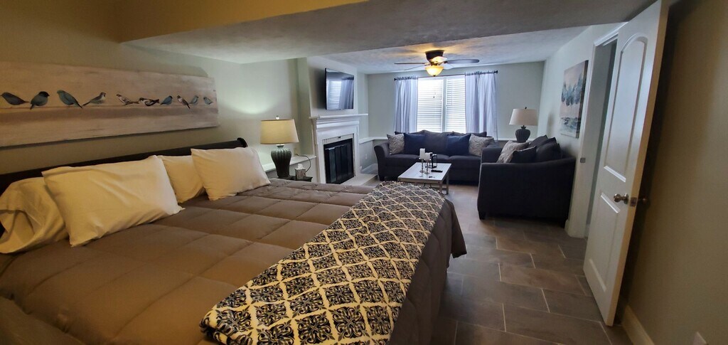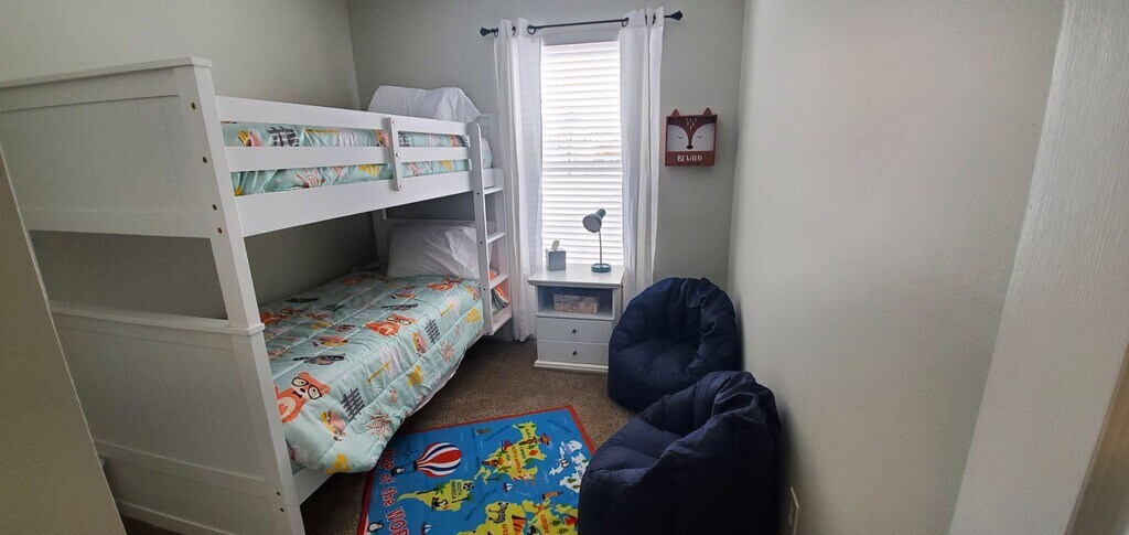 Plum Tree Luxury furnished rentals offer the quality furnished living you deserve. Our houses feel like a home the second you enter the door. This particular home is perfect for a family stay, coming with a kids room with bunk beds and 3 other bedrooms for the adults! In the downstairs bedroom, you'll notice a lovely fireplace and another seating area right next to the bed! The back deck is large enough for the whole family to gather outside. There is no smoking or vaping inside and pets are not allowed at this home.