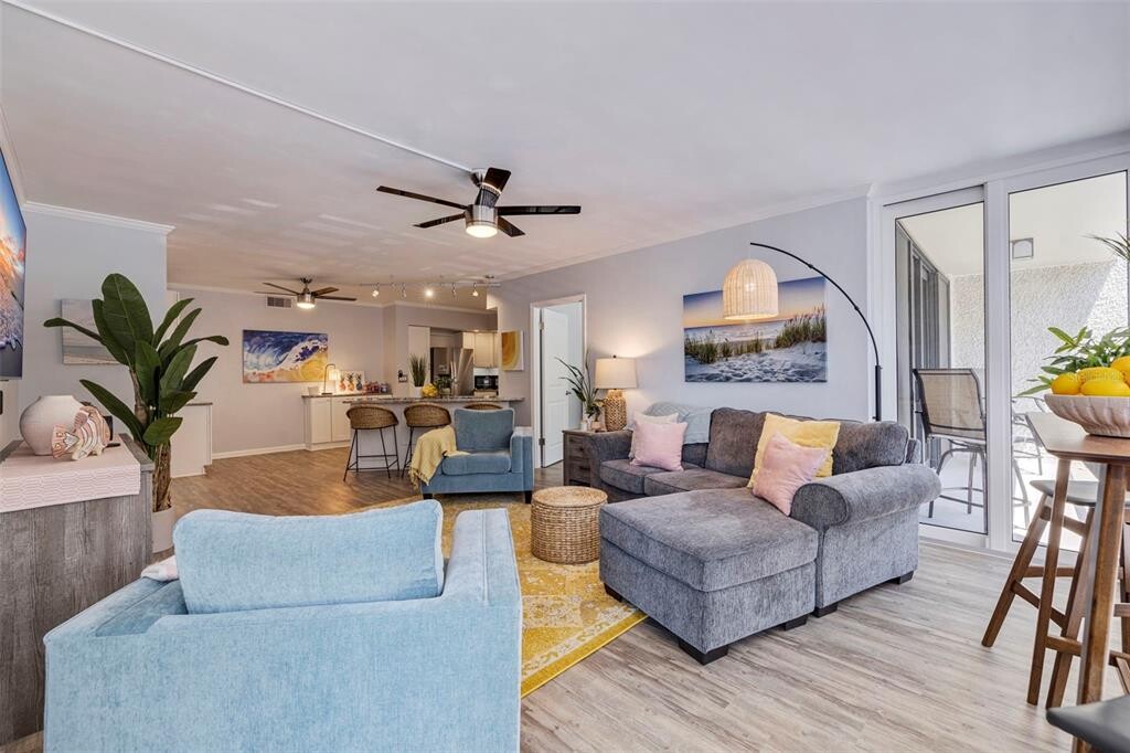 Nestled on the second floor of this beachfront condominium in St. Pete Beach,you have beach and City views. This stunning two-bedroom,two-bathroom unit offers the perfect blend of coastal luxury and relaxed living. With direct access to the pristine shores and a sparkling pool,this newly remodeled condo promises an unforgettable coastal getaway. This condo is all about location! With direct access to the beach,you can relax under a beach umbrella,sunbathe,or take a dip in the Gulf at your leisure. Only a short distance away is downtown St. Pete where you’ll find a hub of culture and entertainment. Boasting world-class museums,diverse dining experiences,local breweries,and the Tropicana Field stadium home to the Tampa Bay Rays where you can enjoy a baseball game with the locals. The interior boasts a fresh and modern aesthetic,featuring neutral color palettes,natural textures,and chic furnishings that create an inviting and relaxing atmosphere. The open concept living area is perfect for spending quality time with family and friends. It flows seamlessly into the dining area and kitchen,creating a spacious and communal atmosphere,while the private balcony floods the space with natural light. The kitchen features modern appliances and ample counter space. Whether you're whipping up a fancy dinner or making a quick beach picnic,you'll have everything you need here. Two well-appointed bedrooms offer comfortable sleeping accommodation. Each bedroom is beautifully decorated and furnished with plush bedding to ensure a restful night's sleep. In addition to beach access,the condo complex features a refreshing pool for those days when you want to take a break from the salt and sand. Lounge by the poolside,soak up the sun,or cool off with a refreshing swim. The perfect escape for beach lovers and those seeking a stylish,yet comfortable coastal retreat. Whether you're looking for relaxation,adventure,or a bit of both,this condo has it all. Don't miss the opportunity to experience the ultimate beach getaway at The Seamark! Three-month minimum: Available 4/2026-12/2026. MLS# U8238648