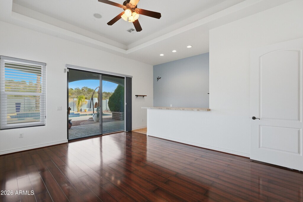 No Application Fees! Exceptional 4 bedroom plus den,4 bathroom custom Gold Canyon home situated on a premium corner lot with sweeping views of the Superstition Mountains. This spacious single level home offers nearly 4,000 square feet of well designed living space and welcomes you through a circular drive and private courtyard with pavers,pergola,water feature,and landscaped grass areas. This custom home features tile flooring throughout all living and high traffic areas with upgraded carpeting in the bedrooms,high ceilings,neutral paint,upgraded lighting,and excellent natural light throughout. Inside,the layout includes a large front living room with direct backyard access,formal dining area,and a separate living space with gas fireplace. The upgraded kitchen is designed for both everyday use and entertaining,featuring granite countertops and backsplash,beautifully upgraded cabinetry,large island with breakfast bar,built in oven,butler's pantry,walk in pantry,and all stainless steel appliances. The split floor plan offers a private primary suite with its own entrance,an oversized walk-in closet with built in storage,dual vanities,soaking tub,and separate step in shower. A bonus game room with wet bar opens directly to the backyard and pool area. The backyard is designed for Arizona living with an extended covered patio,sparkling pool with waterfall feature and spa,grass area,RV gate,and no neighbors to the rear. A three car extended garage provides excellent parking and storage. Located in the heart of Gold Canyon,this home offers breathtaking views of the Superstition Mountains and easy access to some of the area's best outdoor recreation. Residents enjoy close proximity to hiking and biking trails,golf courses,and the natural desert landscape that makes Gold Canyon unique. Nearby amenities include local dining,shopping,and community parks,while still offering a quiet,scenic setting away from city congestion. This location provides a true Arizona lifestyle with unmatched mountain scenery,open space,and access to outdoor adventure. All Denali Real Estate residents are automatically enrolled in the Resident Benefits Package (RBP) for $55.00/month which includes Renter's Liability Insurance,Credit Building to help boost the resident's credit scores with timely rent payments,up to $1M Identity Theft Protection,HVAC air filter delivery (for applicable properties),our best-in-class resident rewards program,and much more!