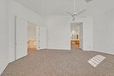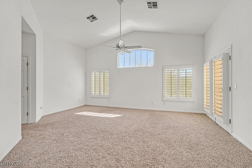 Beautiful and spacious two-story Green Valley home featuring 4 bedrooms, 3 bathrooms, and a 3-car garage. Step inside to a bright open layout with vaulted ceilings that create an inviting atmosphere. The kitchen comes equipped with stainless steel appliances, tile flooring, and plenty of cabinet space. The primary suite offers a private balcony, walk-in closet, soaking tub, and separate shower. The updated hall bath includes dual sinks, granite countertops, and tile flooring. Ceiling fans and window shutters are featured throughout. Enjoy outdoor living in the backyard with a covered patio and sparkling pool — perfect for relaxing or entertaining.*For move-ins in November and December, leases will be a minimum of 15 months.**Monthly Base Rent: $2,595; Trash $20; Total Monthly rent $2,615*