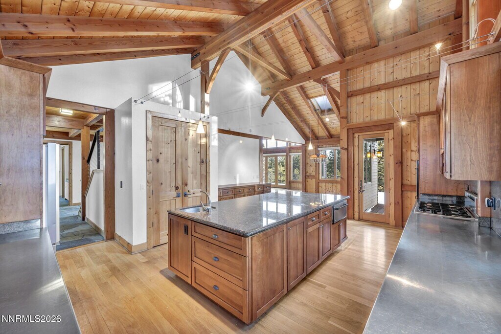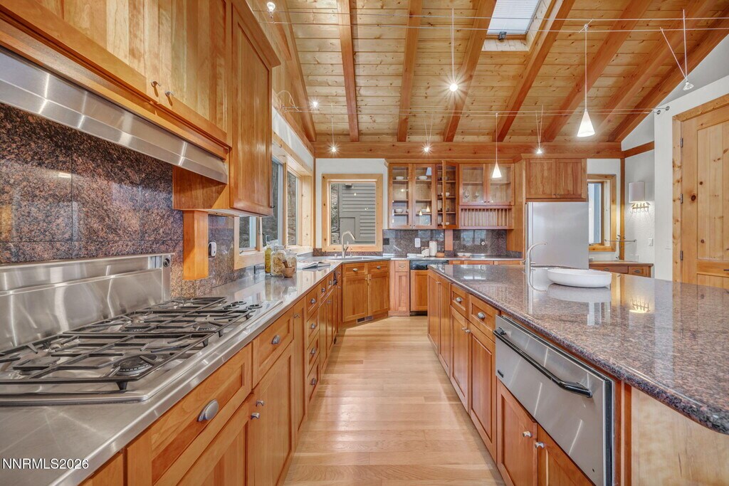 Move-in ready luxury Timberpeg home in gated Saint James's Village,surrounded by the Toiyabe National Forest. 4BD/3.5BA,4,733 SF. Dramatic great room with floor-to-ceiling windows,rich wood finishes,sunken wet bar (sink + fridge) and seamless flow to gourmet kitchen with Italian granite island,high-end appliances,stainless surfaces and oversized pantry. Main-level primary suite with vaulted ceiling,gas fireplace,large WIC and spa-style bath with walk-in shower. Private Trex deck with meadow views. Upper-level loft with custom built-ins plus bonus room. Lower level features family room with backyard access,3 additional bedrooms including secondary primary suite,plus approx. 800 SF storage. Owner pays landscaping,snow removal and water/irrigation. Tenant pays electricity,gas and garbage. Septic. Small dogs negotiable (2+ yrs) w/additional deposit. No cats. No smoking/vaping. Long-term lease preferred. 45 application fee per adult. MLS# 260001626