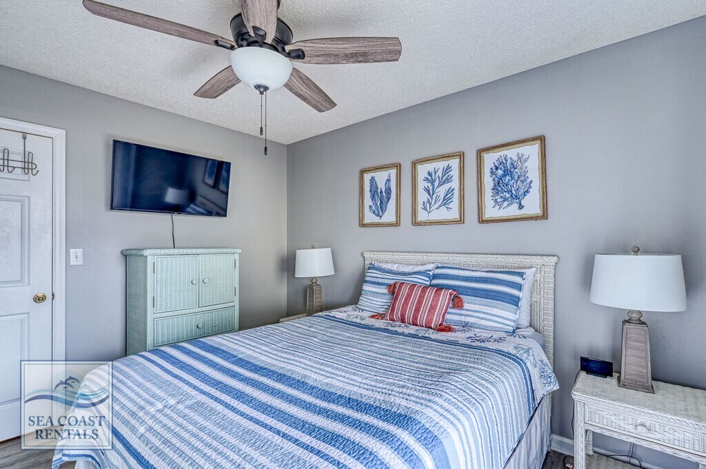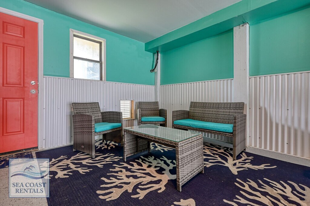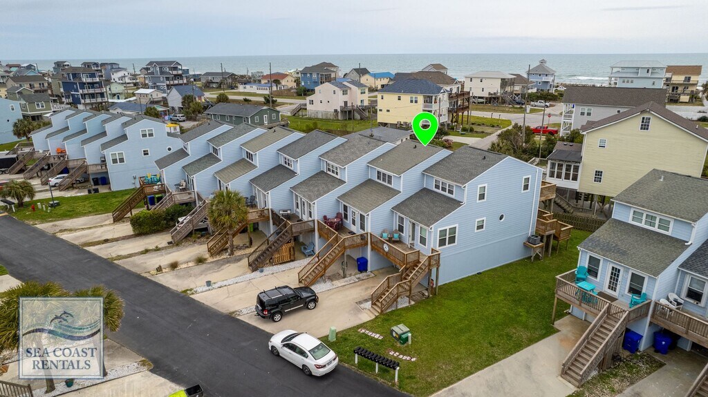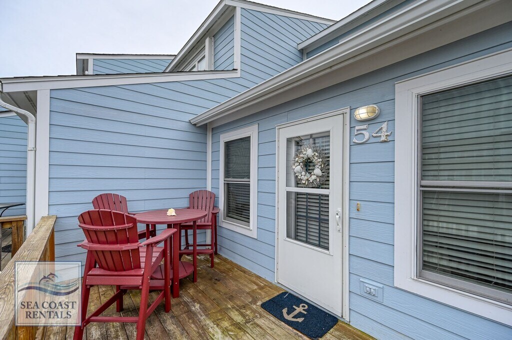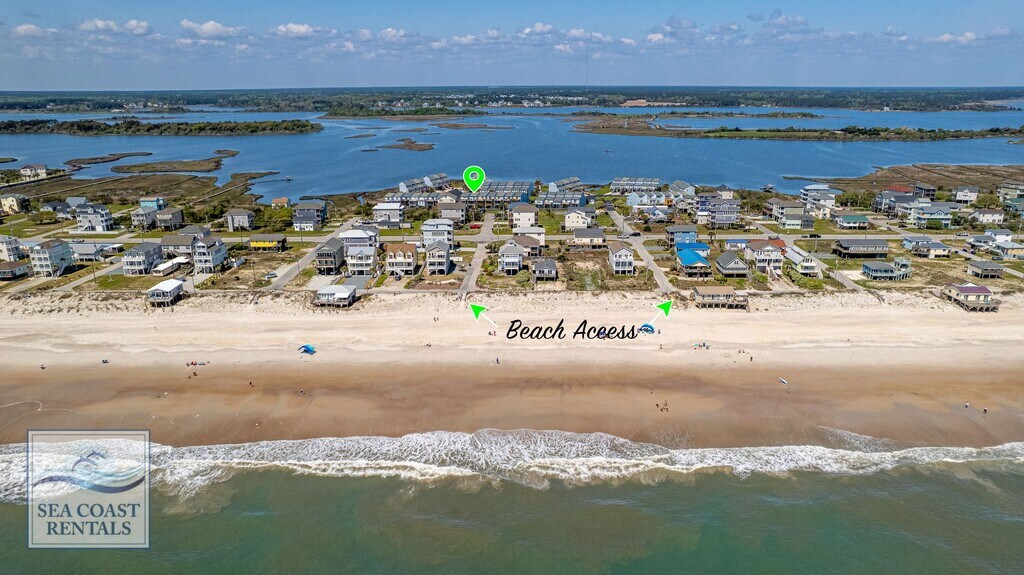 GORGEOUS, CLEAN, NICELY DECORATED UNIT AT THE BERMUDA LANDING Sit right down with your Margarita (or Mock-a-rita) and enjoy “The Salted Rim”. Located in a beautiful townhome community on the Intercoastal Waterway side of North Topsail Beach. This adorable 3 bedroom, 2 bath property will feel like a home away from home, the perfect spot to "work from home". The townhome community of Bermuda Landing has a dock to fish from or set out a crab trap for a special treat with dinner. You can even put in a flat bottom boat right into the morass to investigate the salt marsh and be eye to eye with a blue heron or see the river otters play. The Atlantic Ocean is just a block and a half away, a 2-minute walk to the closest public beach access. All you need to do is head straight down 11th street and you are at the ocean! The entire home is decorated in white, grey, and navy blues. It’s such a pretty place. You can sit at the table and chairs on the front porch sipping your coffee and watching the pelicans soar by and the Island wake up. From the front porch you enter the home into the open floor plan living room, kitchen, and dining area. The living room is comfortable and relaxing with a well cushioned couch and two plush chairs. The smart TV is hung over the dining room table which seats 4. The kitchen is equipped with everything you need to make a quick meal before heading out to your next island adventure. For your convenience there is a full-size washer and dryer on this floor as well as a full bathroom with step in shower. The bedroom on the first floor has a queen bed, smart TV, and private access to the back deck where you’ll find a bar height table with 4 seats and 2 lower Adirondack style chairs. Such a peaceful place to gather and reflect on the day, enjoy a good book or just sit quietly communing with nature. The second floor has a bunk bedroom as well as the primary bedroom. There are 2 sturdy bunk beds (4 twin size mattresses) with drawers for storage underneath, the smart TV for the kiddos to enjoy is wall mounted. The master bedroom has a king size bed, smart TV, and a private deck with 2 tall chairs to take in the gorgeous sunrise and sunsets. The second-floor full bath has a combined bathtub/shower. You will want to return again and again, Margarita in hand to “The Salted Rim”! **Please contact Ann at Sea Coast Rentals for further information and/or to check available dates. Check out all our rentals: both furnished off-season and unfurnished long-term. **
