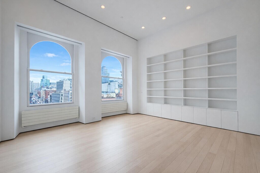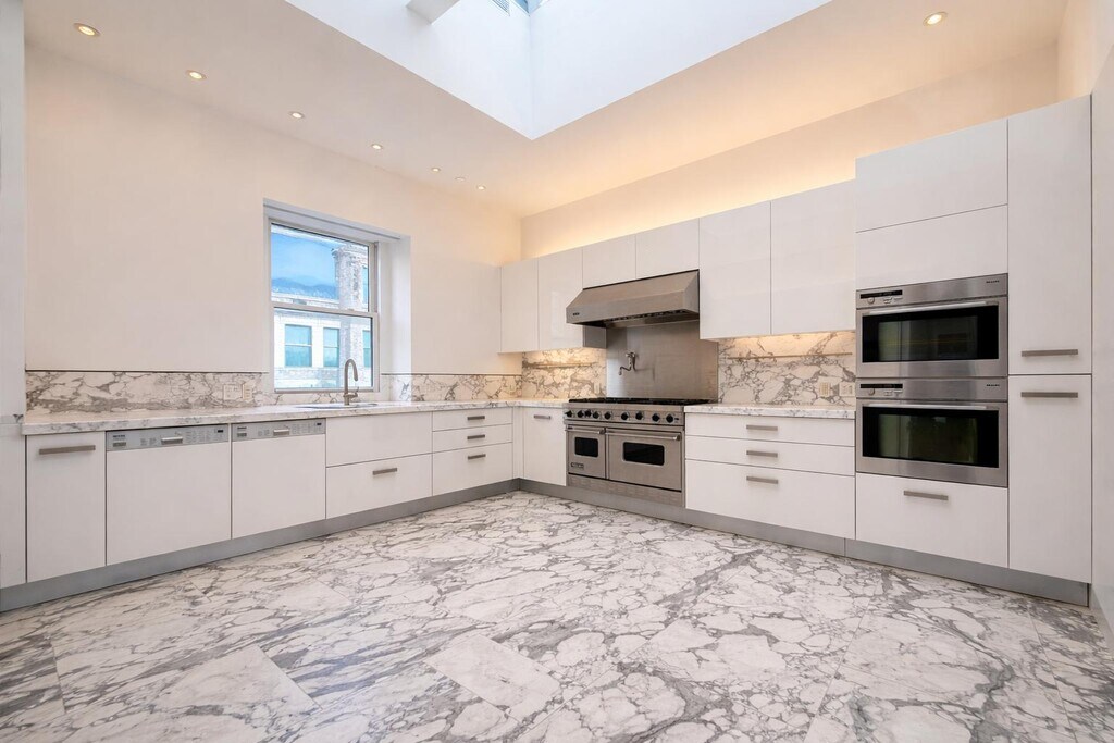 A truly exceptional residence, this stunning NoHo penthouse loft spans approximately 4,000 square feet and is masterfully designed with clean modern lines and minimalist elegance. A private keyed elevator opens directly into an elegant limestone entry lobby, setting the tone for this expansive and thoughtfully designed home.The residence features three bedrooms, two full bathrooms, and two half bathrooms, along with twenty-three oversized loft windows that flood the space with natural light. The open layout includes a striking indoor solarium, a spacious chefs kitchen with pantry, a charming dining area, and a dedicated entertaining bar perfect for hosting.Additional highlights include a private laundry room equipped with two Miele washers, two vented Miele dryers, a utility sink, and custom cabinetry, as well as a private sauna, four skylights, and multiple walk-in closets. The residence is finished with 4-inch wide, extra-long plank northern hard maple floors, furniture-grade in quality, and ceilings reaching up to 12 feet in height.The chefs kitchen is finished with Italian white and gray Calacatta Fabricotti marble across the countertops, backsplashes, and flooring. Custom Italian high-gloss cabinetry features soft-close drawers, pull-out storage, and magic corner units. Designed for both everyday living and serious cooking, the kitchen includes 27-inch deep counters, a 48 Sub-Zero refrigerator, and a 48 Viking stainless steel gas range with six burners, two ovens, and a grill, complemented by a 1400 CFM Viking exhaust hood. Two Miele in-wall convection ovens with probes and rotisseries provide additional culinary flexibility.The adjoining pantry includes a DCS stainless steel microwave and a lockable full-height Sub-Zero wine unit with two drawers. Additional features include two Miele dishwashers, a large Waterworks sink with pull-out faucet, garbage disposal, Varenna utility bars, and approximately 20 linear feet of counter space. Undercabinet lighting combines xenon and dimmable fluorescent systems, while a dramatic double-pitched skylight measuring approximately 10 x 13 fills the kitchen with natural light. The space also features heated flooring and recessed sliding frosted glass doors.The spa-inspired bathrooms feature double showers with steam generators, custom seating, and Ceramica Flamina concealed drains, as well as deep cast-iron Waterworks soaking tubs. The primary bathroom includes a McCoy Western Red Cedar sauna with custom indirect lighting, designed to accommodate both traditional and moist sauna experiences.Fixtures throughout the residence are by Vola, designed by Arne Jacobsen, with Italian-made sinks. Two of the bathrooms feature Sicis glass mosaic tiles covering all surfaces, including the ceilings. Each bathroom includes dual towel warmers one Italian Bisque and one custom Myson unit from England. All glass partitions and mirrors throughout the home are made with iron-free glass, eliminating the green tint typical of standard glass. All tiled and stone flooring features hydronic radiant floor heating, while steam showers include dedicated exhaust systems.Climate control is managed through a Crestron automation system, and the residence is pre-wired for advanced electronics within a private electrical closet.The indoor garden solarium features three iron-free glass walls, a pivoting glass door, a heated Corian wall, a dedicated exhaust system, full-floor drain, wall hose faucet, and electrical supply. Above, a 9 x 10 skylight with retractable shade provides natural illumination, while independent heating and exhaust systems are controlled via a dedicated thermostat.Located within the NoHo Historic District, 330 Lafayette Street is a distinguished Romanesque Revival warehouse building constructed between 1895 and 1897 and designed by renowned architect George Keister, also responsible for New Yorks iconic Apollo and Belasco Theatres. Sovereign Associates Inc.