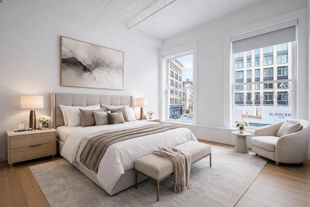 Masterfully designed and fully renovated, this exceptional NoHo loft offers 3 bedrooms and 3 full bathrooms in a rare 2,122 square-foot corner layout. Original architectural columns and soaring ceilings of up to 12 feet deliver classic loft character, while every finish and detail has been elevated to a truly modern standard.Custom millwork runs throughout the home, complemented by 4-inch solid White Oak flooring and oversized Marvin double-hung windows that flood the space with natural light.At the heart of the residence is a chef-caliber kitchen, featuring statuary solid stone marble, a striking custom stainless-steel countertop with an integrated sink, and a fully vented walk-in pantry complete with a temperature-controlled wine refrigerator. The appliance package is second to none, including a Wolf Range, Bosch wall ovens, Sub-Zero refrigerator, Sub-Zero freezer drawers, a Miele dishwasher, and premium Grohe and convenience are seamlessly integrated with Nest thermostats and an LG side-by-side washer/dryer.The primary suite is a true retreat, highlighted by an oversized window, an expansive walk-in closet, and a spa-like en-suite bath featuring a deep soaking tub and separate stall shower. All bathrooms are finished to the highest standard with Italian glass mosaic heated floors, white quartzite countertops, and refined tub surrounds.Additional features include custom California Closets in all three bedrooms and the entry closet, an upgraded electrical service system, and beautifully restored tin ceilings.Located in the coveted NoHo Historic District, 54 Bleecker Street (aka 330 Lafayette Street) is a landmark Romanesque Revival warehouse building built between 1895 and 1897, designed by renowned architect George Keister, celebrated for iconic New York theaters including the Apollo and Belasco. Sovereign Associates Inc.