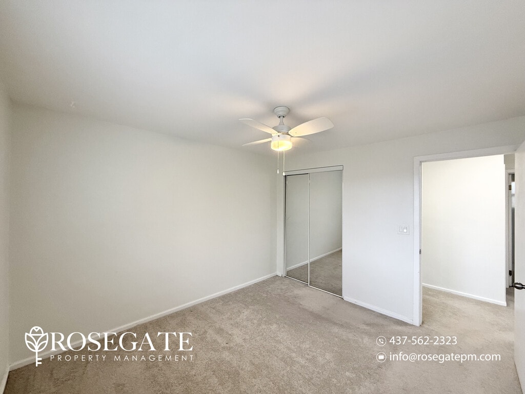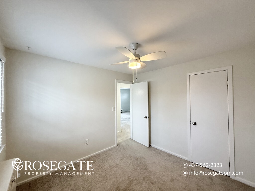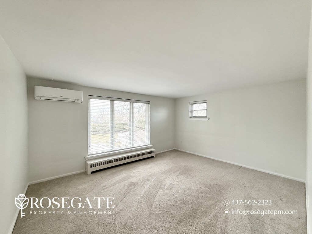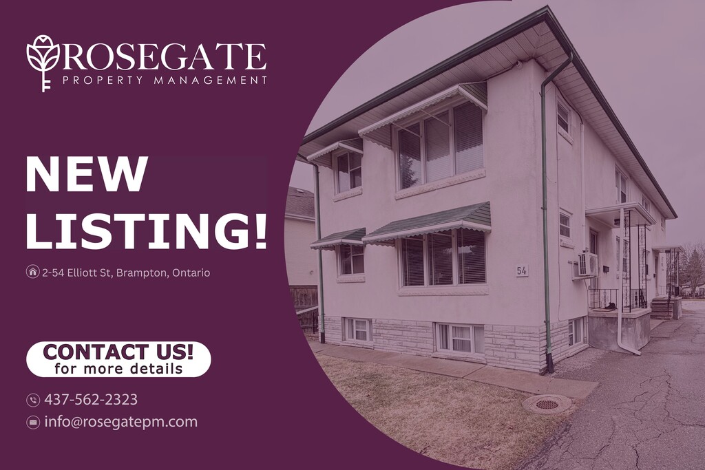 Bright 2-Bedroom Corner Apartment with Shared Backyard – Brampton Welcome to 2–54 Elliott Street, Brampton — a well-maintained corner unit apartment offering approximately 750 sq. ft. of comfortable living space.This unit features 2 bedrooms and 1 bathroom, making it a great option for small families, professionals, or roommates seeking a practical and well-located home.The primary bedroom includes a his and hers closet, providing added storage and convenience. The kitchen comes equipped with a microwave, and the unit also includes a window air conditioning unit and radiator heating for year-round comfort.Laundry is available on-site with pay-per-use washer and dryer, with cold water wash only.Tenants are responsible for hydro only, which is transferred into their name, helping keep overall utility costs manageable.Enjoy access to a shared backyard, offering outdoor space to relax.Located close to transit, shopping, parks, and everyday amenities, this professionally managed rental provides both comfort and convenience in Brampton.Book your viewing today.