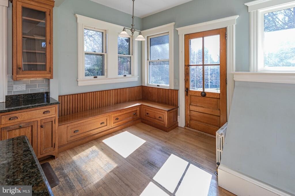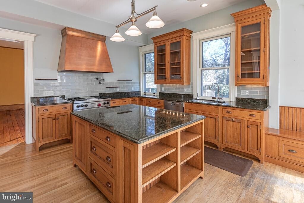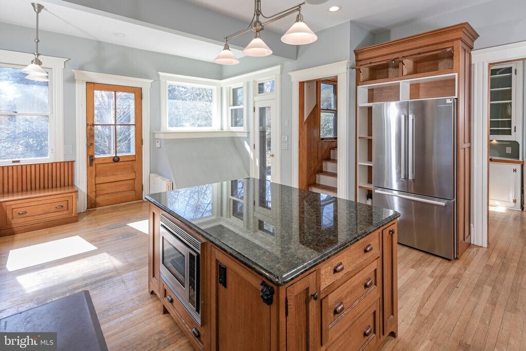 Located on one of Princeton’s most distinguished streets in the Western Section, this stately Craftsman blends historic character with modern updates. Original millwork, pocket doors, leaded glass windows, high ceilings, and wood floors highlight the home’s timeless craftsmanship. The updated kitchen features custom cabinetry, a Wolf professional range, copper range hood, and a generous center island, opening to a sunny breakfast area with access to decks, patio, and a beautifully landscaped backyard. A butler’s pantry and powder room are conveniently located nearby. Five spacious bedrooms, three full baths, and one half bath span three light-filled levels. Two home offices and a charming sleeping porch offer flexible work and retreat space. Fireplaces anchor the living and dining rooms, and the basement provides additional storage. Outdoor living includes a covered side porch, two-tiered decks, stone patio, and a private backyard with a custom shed. Ideally located close to downtown Princeton, Princeton University, shops, restaurants, and commuter trains.