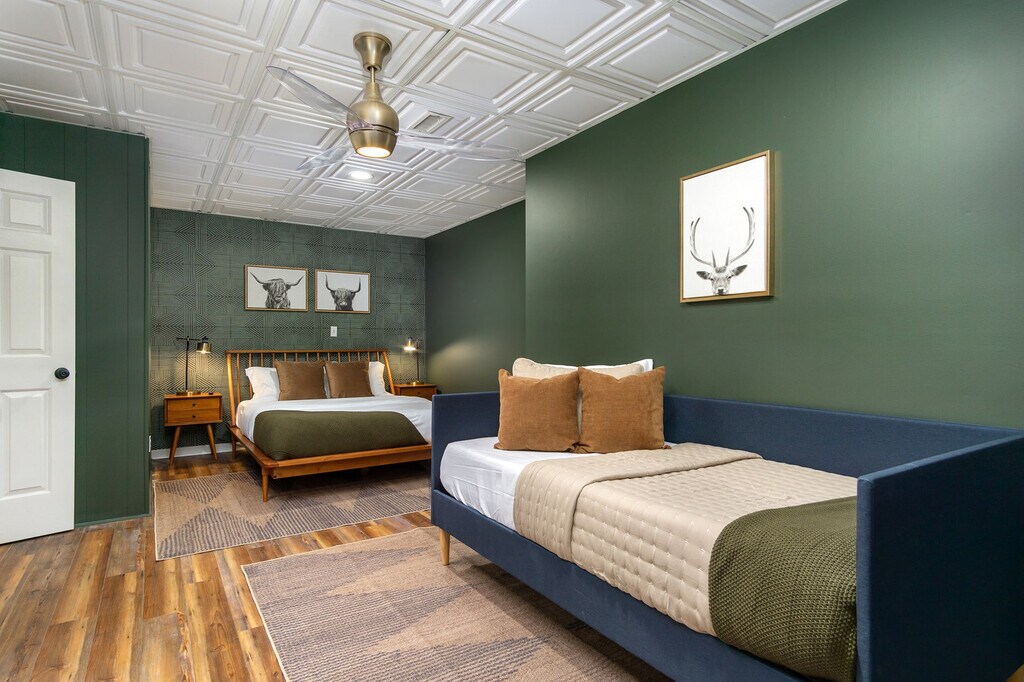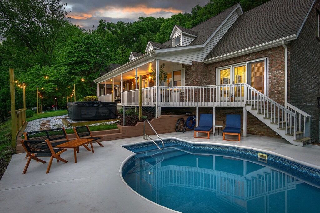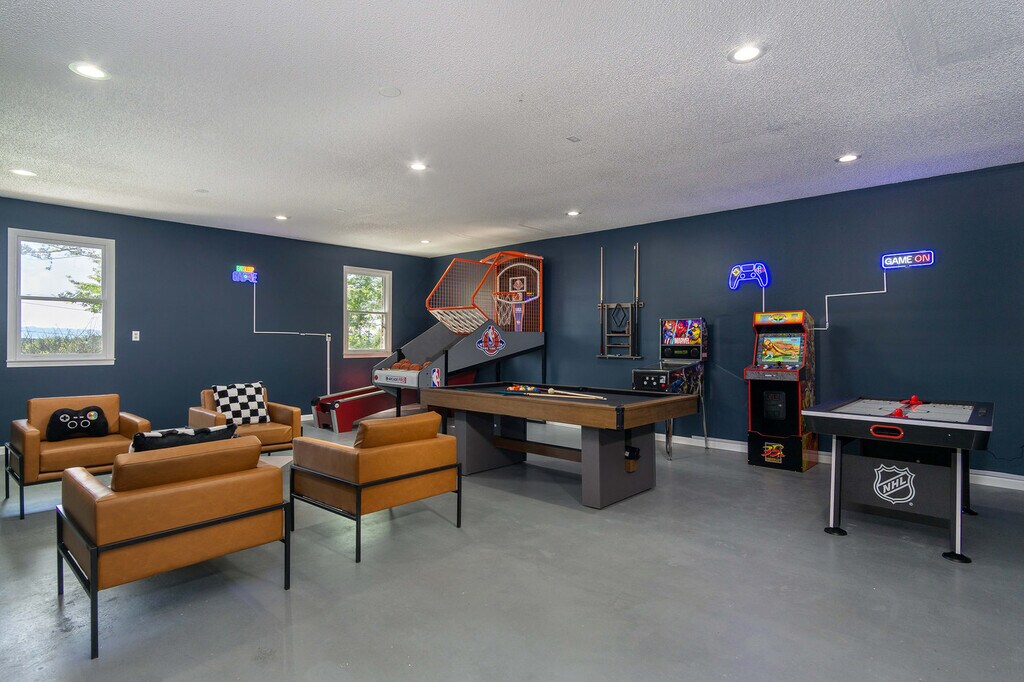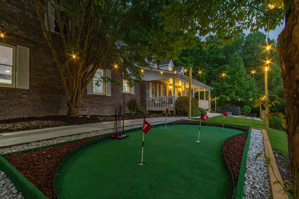 Discover the comfort of this modernized home, where every corner is crafted for your enjoyment. Located just 12 minutes from downtown Asheville, this stunning 9-bedroom retreat is designed for comfort and fun, ideal for large groups and comfortably accommodating up to 21 people. With a large pool available from May to September, a massive game room featuring a pool table, air hockey, skee ball, arcade games, and more, an in-home gym, a new hot tub, a sportscourt with pickleball and basketball, a movie theater, a fire pit, mini golf, an indoor climbing wall, and a BBQ grill, this private and secluded property has it all. Get ready to create unforgettable memories with your loved ones! Welcome to your dream home—a stunning 9-bedroom retreat designed for comfort and fun! This property is family-friendly, providing a pack n play and high chair for the little ones. The main spaces of the home include 9 bedrooms and 3.5 bathrooms, a chef’s kitchen with an electric range, plenty of cooking space, a large island with seating, and a Keurig and filtered coffee makers. The living room offers lots of natural lighting, a large brown sofa, and a 50-inch Smart TV. The arcade room features a pool table, board games, air hockey, skee ball, arcade games, a Nintendo Switch, basketball, and a 65" TV. The movie theater includes a plush couch, projector and screen, and a popcorn machine. The spectacular backyard and deck offer a private pool, BBQ grill, poolside loungers, a sports court, plenty of sofa seating, putt putt mini golf, a hot tub, outdoor dining, an outdoor firepit, and string lights for added ambiance. Up to 2 dogs are allowed for $125 per stay, no cats please. Parking for 5 cars max is available, but street parking is not allowed. Our central location allows you many options for activities during your stay. Vintage Kava and Waffle House are within 10 minutes away, Glass Onion is 12 minutes away, and Grove Arcade is 22 minutes away. For shopping, The Cottage Door is 11 minutes away and La Cache Boutique is 12 minutes away. Check-in is at 4 pm and check-out is at 10 am. Guests must be over 21 years old to book this listing. Absolutely no parties are allowed, as this is grounds for termination. We want to be extremely respectful of our neighbors. Quiet hours are between 10:00 PM and 7:00 AM. A simple screening process is required within 48 hours of booking confirmation, and a Rental Agreement must be signed prior to check-in. A non-refundable $60 damage waiver is required, covering accidental damage during your stay, as long as it is reported prior to check-out. Outdoor pools in North Carolina typically close for the season in October, so please inquire ahead of your stay if pool access is essential. [SI]