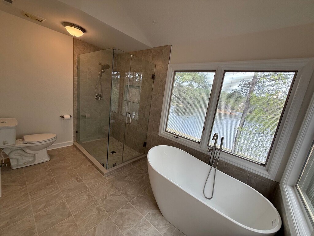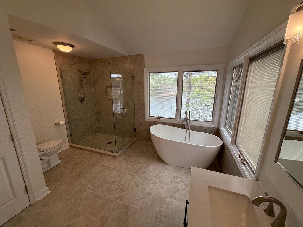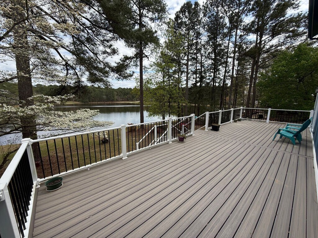 Enjoy peaceful waterfront living in this beautiful 3-bedroom, 2-bath home located on Diamond Lake in the gated community of Carolina Lakes. Tucked away at the end of a quiet cul-de-sac, this home features bamboo floors, vaulted ceilings, and a bright sunroom with stunning lake views. The spacious primary suite upstairs includes a fully renovated bathroom with a stand-alone soaking tub and glass-enclosed shower. Downstairs bedrooms have been freshly updated with new paint and carpet and share a private guest bath. Relax or entertain on the large deck overlooking the water, and enjoy access to community amenities including a pool, clubhouse, trails, and sports courts. A split-unit system in the sunroom provides year-round comfort. Don’t miss this rare opportunity for lakeside living in a peaceful, amenity-rich community!
