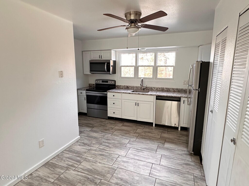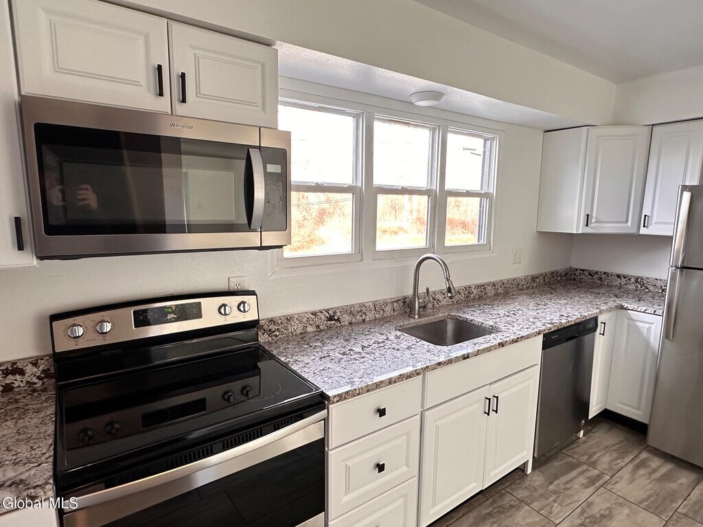 This updated two-bedroom end unit townhome includes a one-car garage and in-unit laundry facilities. Renovated in 2018,it boasts granite countertops,stainless steel appliances,and a chic vanity in the full bathroom. The roof is approximately nine years old,and new windows were installed in the kitchen and bedroom in 2025. Residents can enjoy access to a beautiful paved nature trail from the townhouse parking lot,which connects to additional trails and a waterfall. Conveniently located near Brunswick,Troy,Albany,Waterford,and Cohoes,this property offers a serene setting just outside the city. **NO SMOKING & NO PETS ** MLS ID 202610786