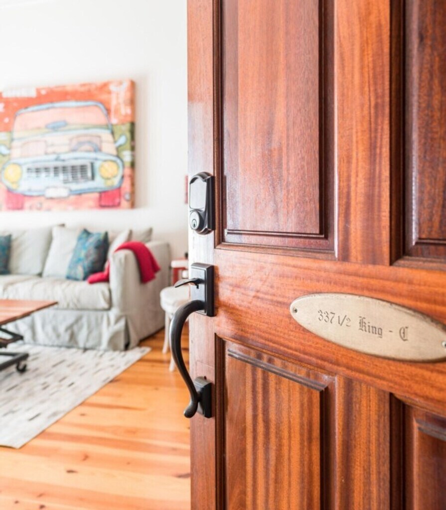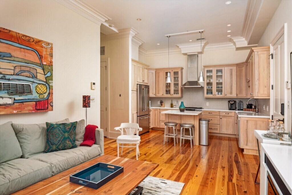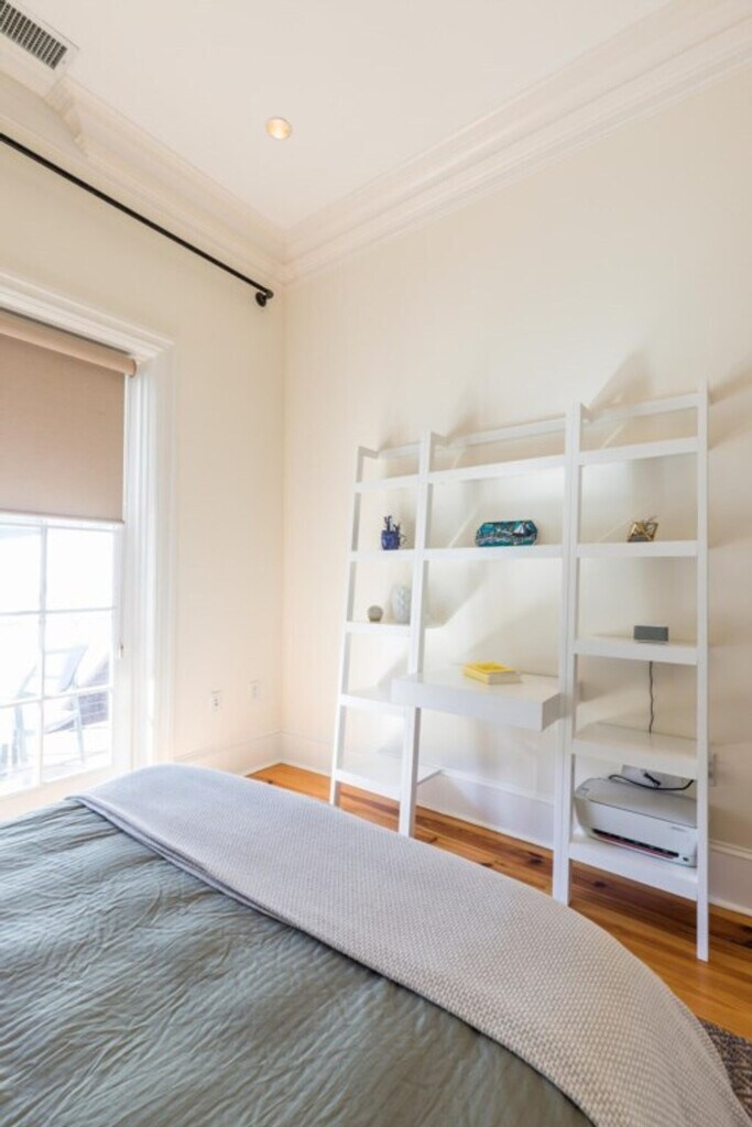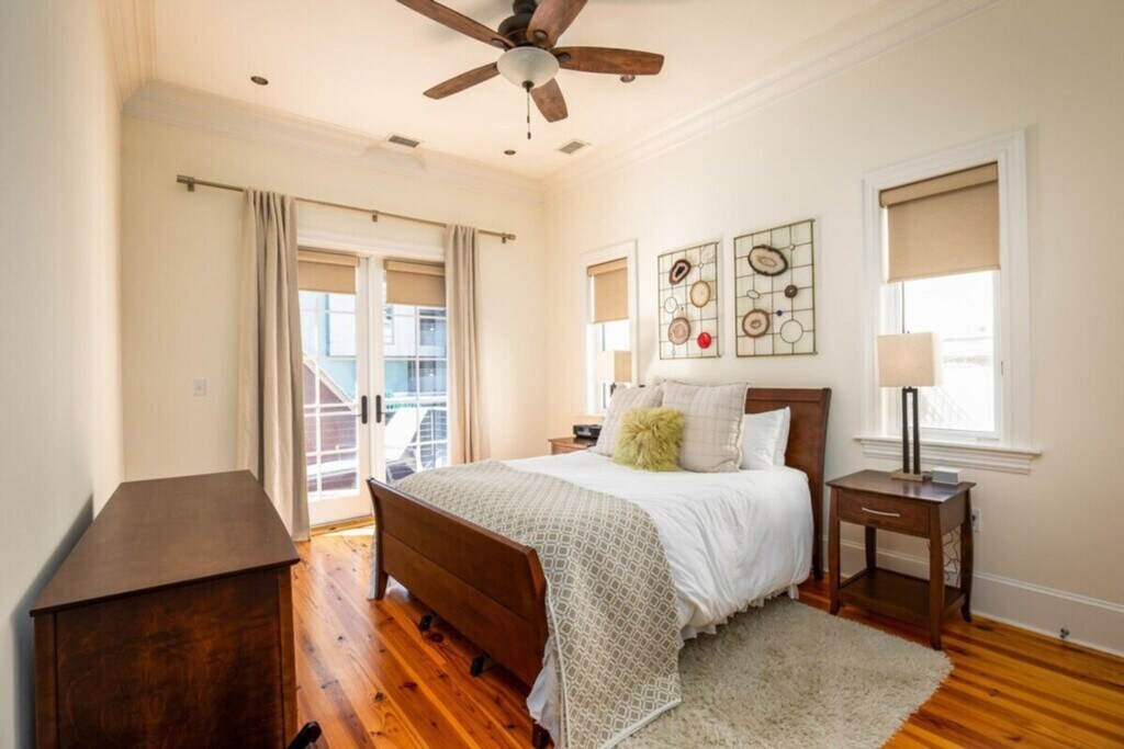 Feel at home in this 950 sq ft King Street condo in Charleston, perfect for up to 6 guests. This stylish retreat offers 2 bright bedrooms and 2 modern bathrooms. This apartment features a fully equipped kitchen, private balconies, fast Wi-Fi, a smart TV, and an electric fireplace. The kitchen includes a full-size stainless steel refrigerator/freezer, gas stove, dishwasher, Keurig coffee maker with complimentary pods, basic cookware, utensils, and dishware. Enjoy the convenience of a kitchen island with seating for two and an outdoor dining table with seating for four on the balcony. The bathrooms include complimentary toiletries, fresh towels, and a hairdryer. Located on King Street, this apartment is steps away from some of Charleston’s best shopping, dining, and historic landmarks. It's a 1-minute walk to King Street, a 5-minute drive to Fort Sumter National Monument, and a 6-minute drive to Joe Riley Waterfront Park. There is a no-pet policy. Includes free, high-speed Wi-Fi throughout the apartment, plus a designated workspace in the guest bedroom. [SI]