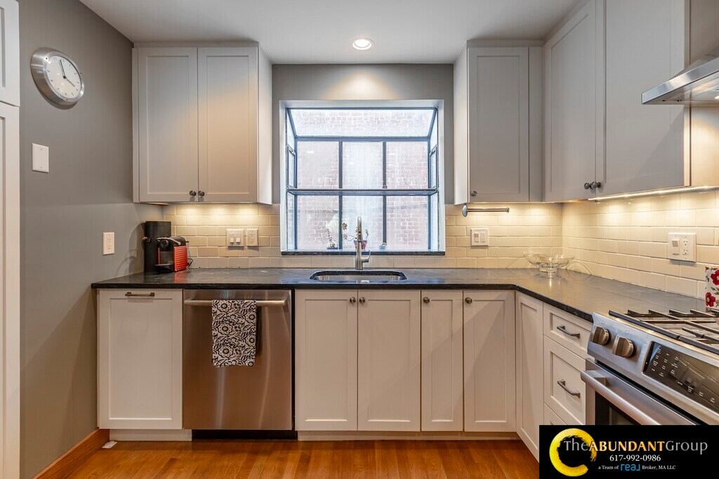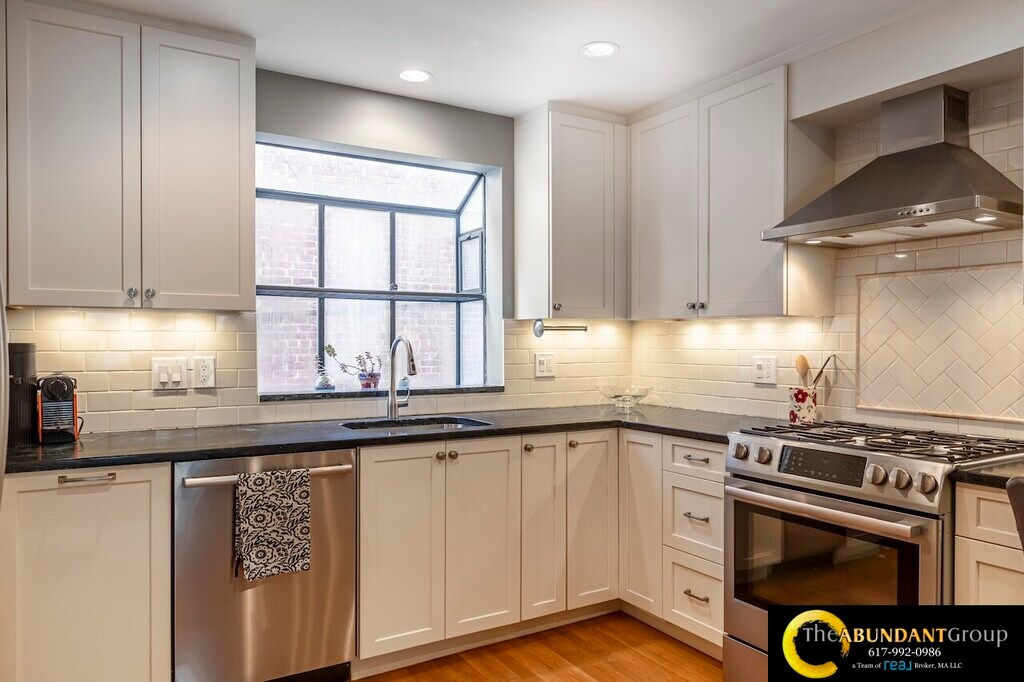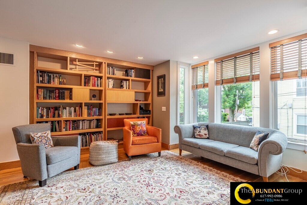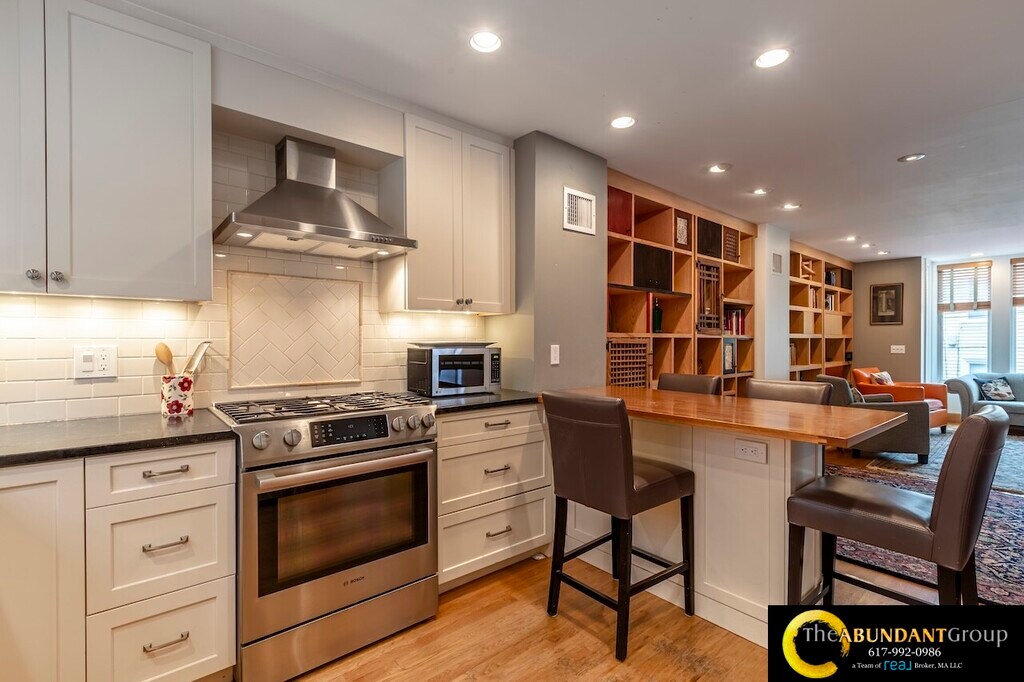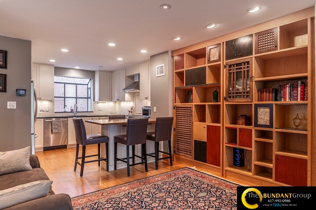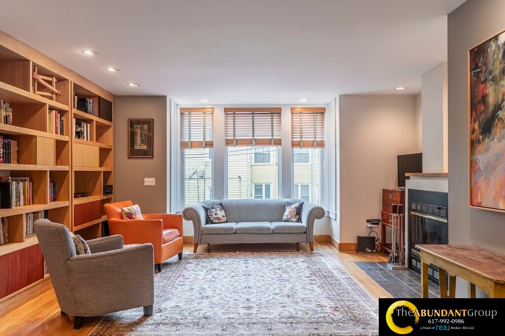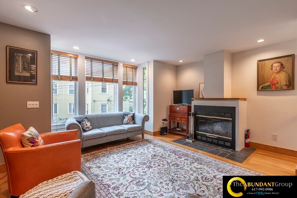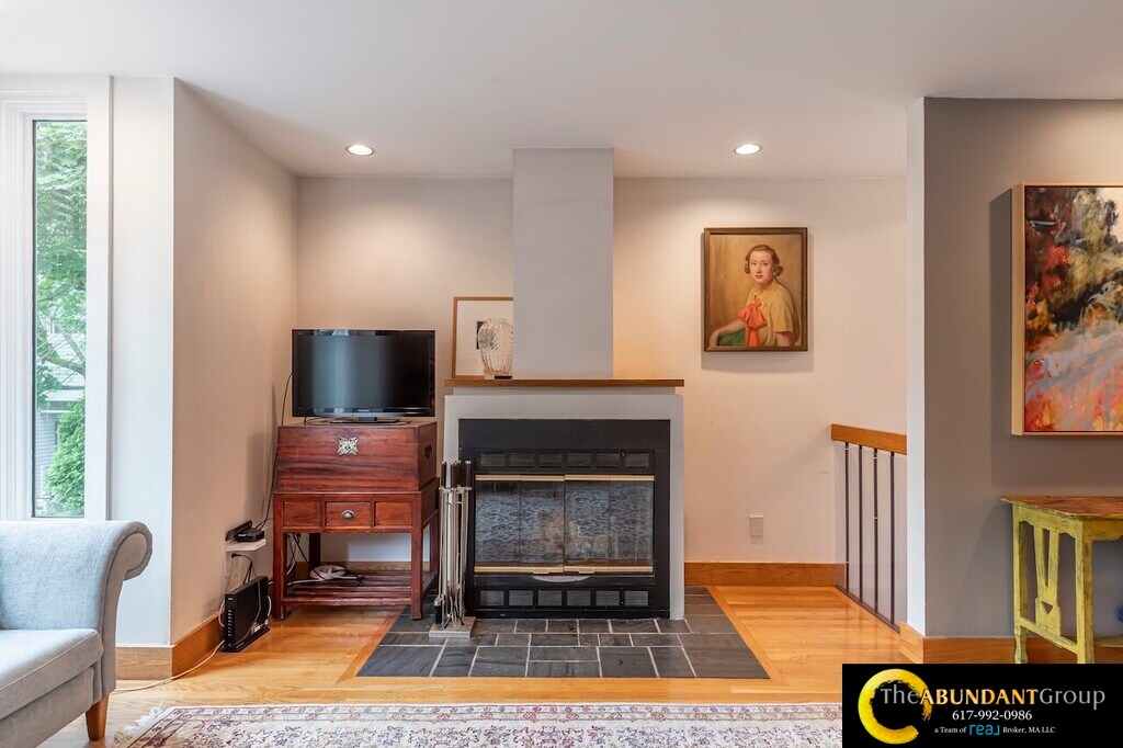Available Now! Spacious multi-level 1992 sq ft townhouse condo offers 3-4 bedrooms, 3 full bathrooms, and garage parking. The fourth Bedroom (ideal as a 4th bedroom, office, or studio) is on the top floor with tons of light and a skylight! This Home is Modern, with a gorgeous, airy open floor plan featuring vaulted ceilings, skylights, and abundant natural light throughout. Highlights include a fireplace in the open living and dining area, central air conditioning, in-unit laundry, and an attached one-car garage. As an end unit, it also boasts a private Patio with a small yard. Located in the desirable Harvard Square Area, close to Harvard, MIT, Inman Square, and public transit.