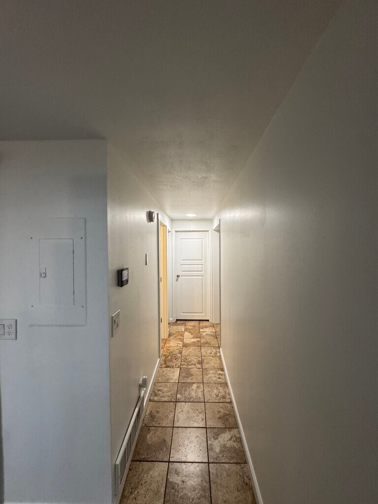 This private room features a clean, modern look with soft gray walls and wide plank wood-style flooring that adds warmth and texture. A large window fills the space with natural light, giving it an open and inviting feel while offering a view of the stunning Utah Mountains. The built-in open closet provides practical storage without overwhelming the room's simple layout. Down the hall, neutral tile flooring leads to the rest of the home, tying together the understated, cohesive design. Overall, the room feels fresh, versatile, and ready to be personalized. - 6 months to 1 year lease - No Pets allowed - No smoking allowed - Plenty of on and off street parking -4 minutes from UVU, 9 minutes from BYU