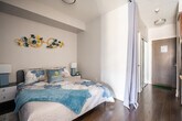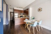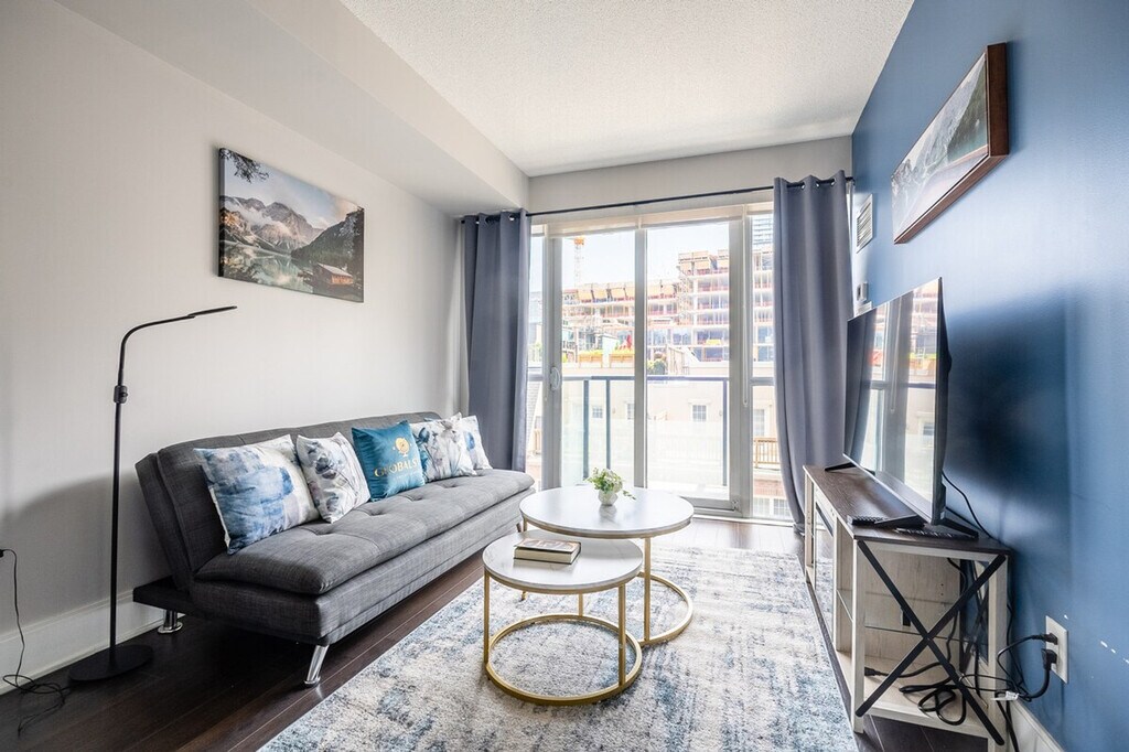 Feel right at home in this comfortable 1-bedroom + den condo, located in the heart of the Entertainment District. This condo has everything you need, including a romantic electric fireplace, 1 bathroom with towels, shampoo, conditioner, body wash, and a hair dryer. The kitchen is fully stocked with cookware, a washer and dryer, tea, coffee, a kettle, a coffeemaker, a toaster, an iron, and an ironing board. Guests have access to the gym, sauna, rooftop deck, media room, meeting room, and party room. Paid parking is available in the garage, and visitor parking is also available. A travel crib (for babies 0-18 months) and bed rails are available for $5 per item per night; please book in advance. Pets are allowed in the apartment for a fee of $20 per pet per night; please confirm with us prior to booking. You'll be steps away from the CN Tower, Rogers Center, Ripley's Aquarium, Union Metro Station, the Financial District, bars, restaurants, Sobeys Grocery Store, and Billy Bishop Airport. There is easy access to the TTC, LakeShore, and Gardiner ExpressWay. Every guest must provide their personal information prior to check-in. Guests whose names or ID do not match the provided information are not allowed into the building. Guests need to be 18 or over in order to check in. Registration Number: STR-2304-HQBHHX [SI]