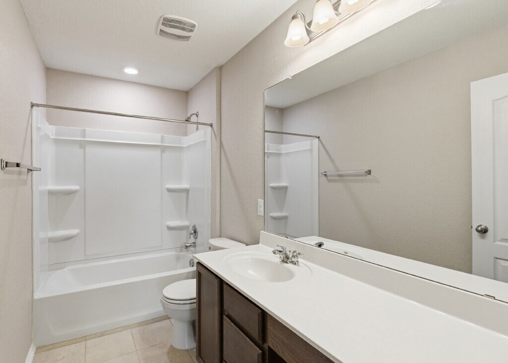 This move-in ready home offers a bright open-concept layout with a living and dining combo that flows into an island kitchen. The kitchen provides generous cabinet and counter space and includes refrigerator, washer, dryer, range, microwave, and dishwasher**. The **primary bedroom is located downstairs and features a separate tub and shower. Additional bedrooms provide flexible space for family, guests, or home office use. Flooring includes ceramic tile in common areas and carpet in bedrooms. The home also features ceiling fans, some window coverings, a two-car attached garage, and a private backyard. Conveniently located minutes from I-35, with access to shopping, dining, Randolph AFB, and SCUC ISD schools. Come tour today!