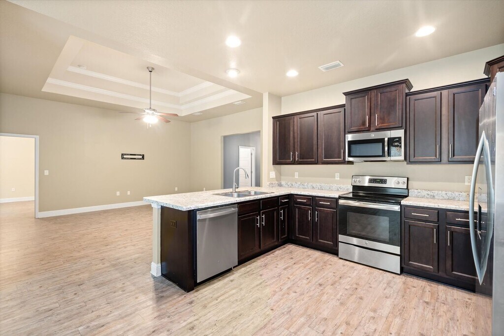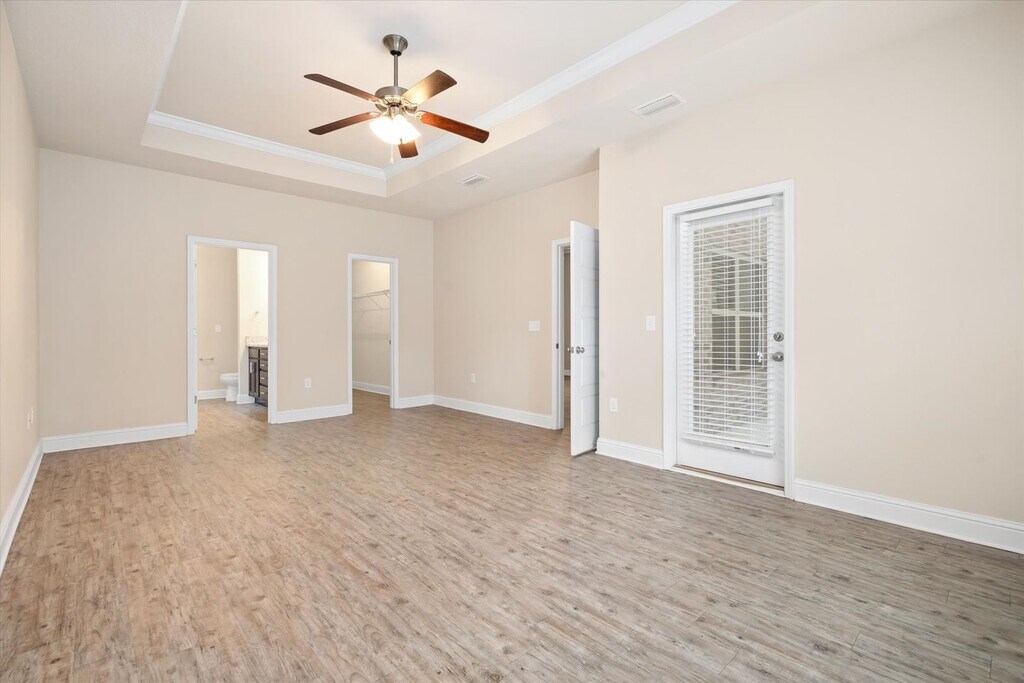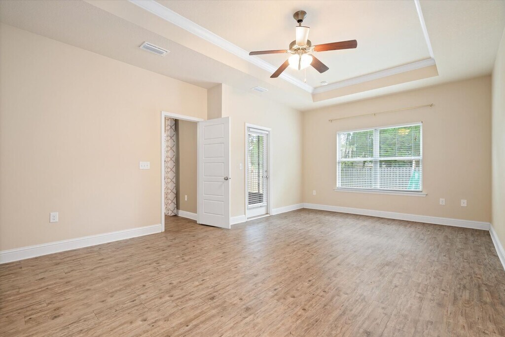 Welcome to this spacious and stylish 3-bedroom, 2-bath home, ideal for those looking for comfort and convenience! Step inside to find luxury vinyl plank flooring, elegant trey ceilings, and wide hallways filled with natural light from the big windows. The open-concept kitchen, dining, and living areas are perfect for entertaining friends or hosting cozy nights in. Retreat to the large master suite featuring dual sinks, a relaxing garden tub, and a roomy walk-in closet. Outdoors, enjoy a covered porch overlooking a large, fenced yard. Located near top-rated schools and the fantastic amenities that Fairhope offers, this move-in-ready home is a must-see! Call Clint Morgan at to preview. Apply at