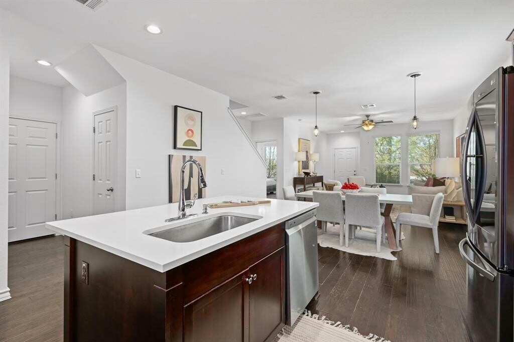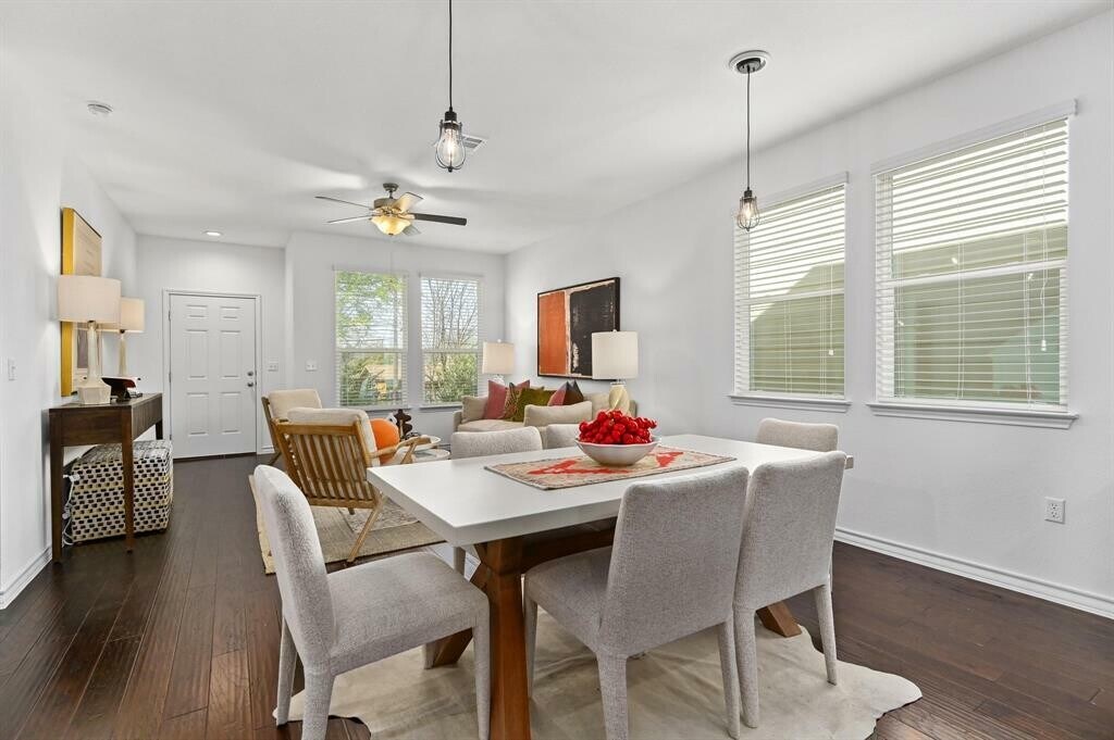 Ideal two-story home in the 51 East subdivision just minutes from Mueller and Downtown! You'll love the modern exterior, open floor plan, and private backyard. Neighborhood amenities and conveniently located close to top restaurants, shops, farmer’s markets, outdoor activities, and so much more. Washer + Dryer + New Refrigerator and Solar Panels included.