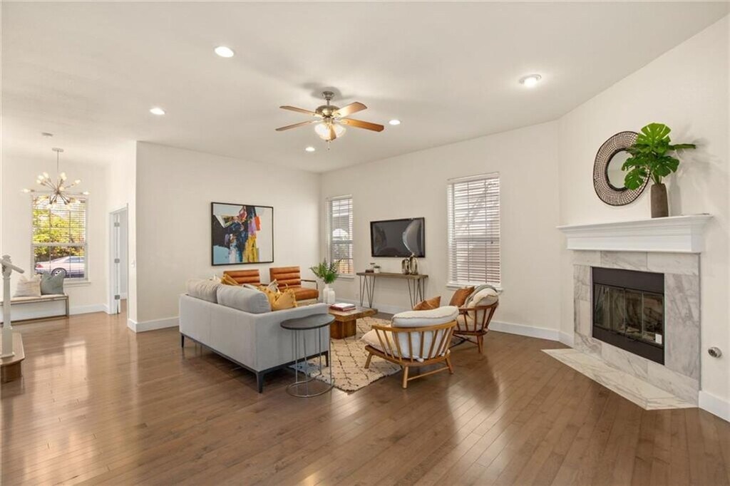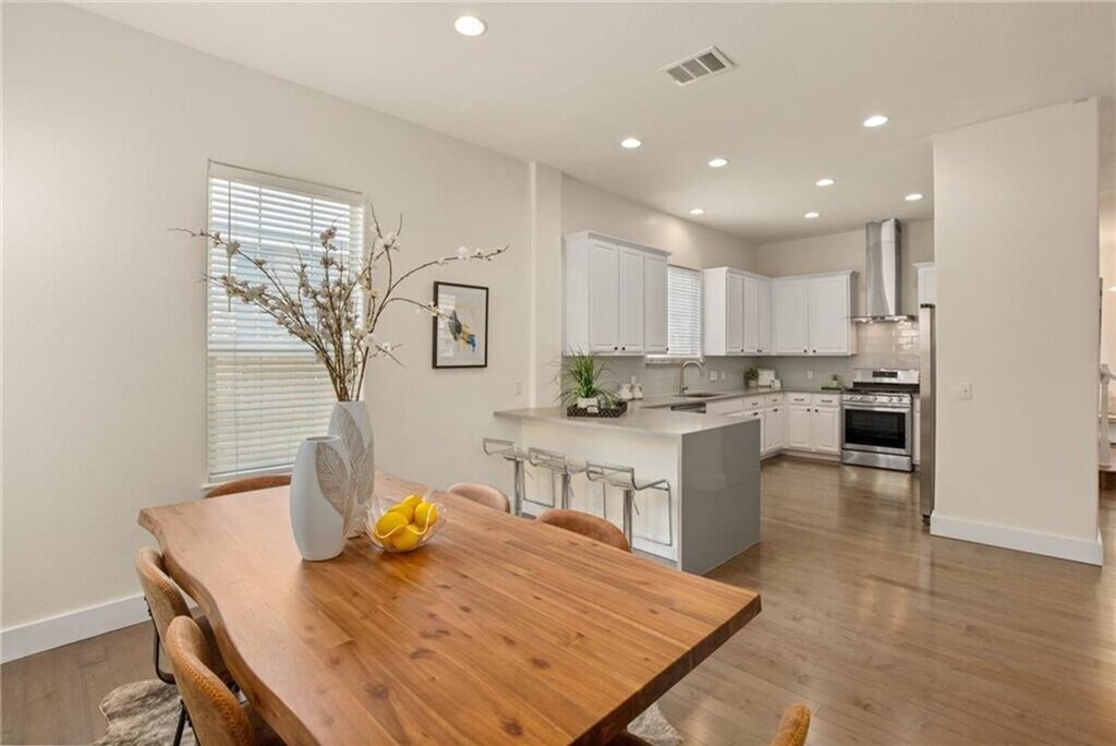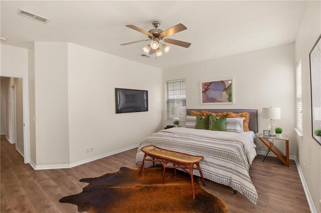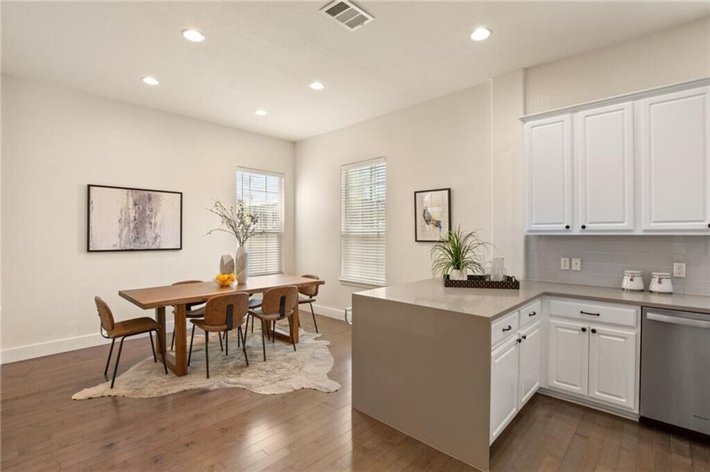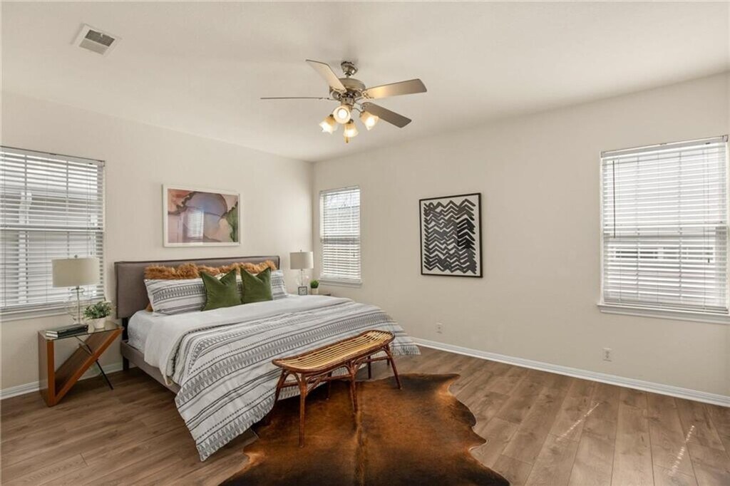 Gorgeous remodel in North Loop area with modern finishes. Ideal for Executive rental. Main house is approximately 2454 SqFt, 4 Bedrooms+Study, 3.5 Baths, 2 Car Garage, with private fenced yard. Updated kitchen and baths with quartz counters, stainless appliances and marble/glass tile. Walk to eateries such as Home Slice, Foreign & Domestic.