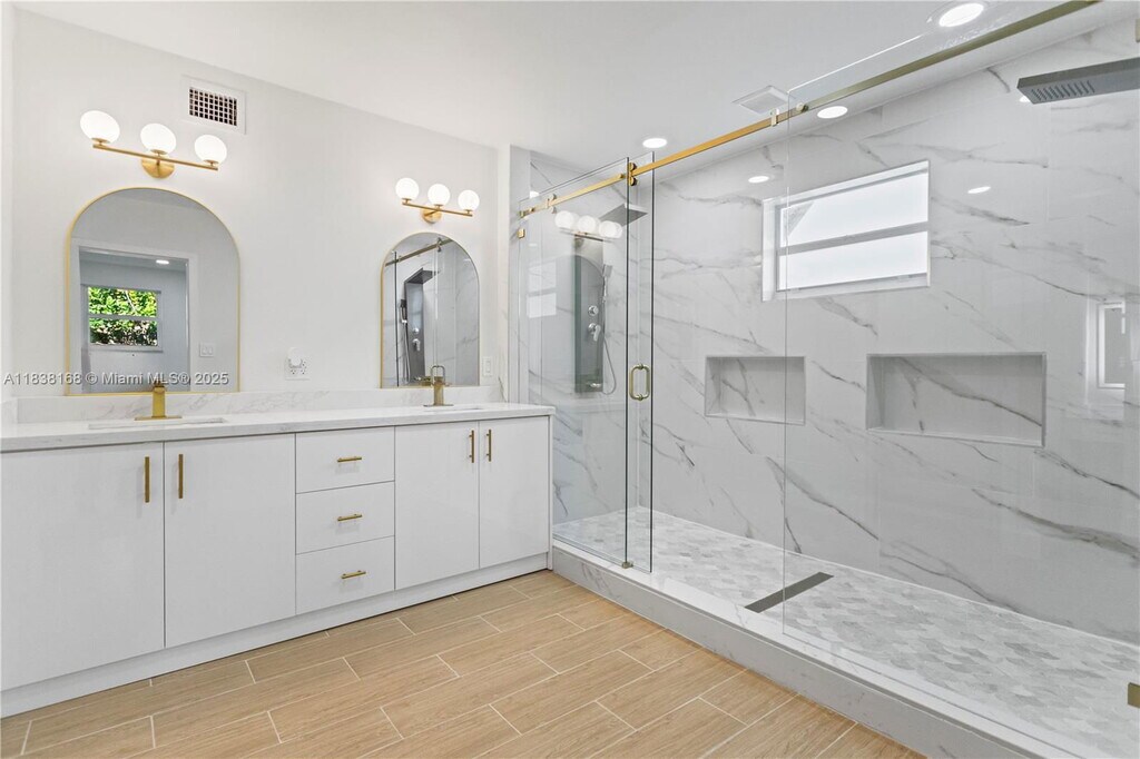This newly renovated 4-bed, 4 bath home sits on a 9,311 sqft lot and exhibits no-expense-spared craftsmanship and design. The open floor plan features new floors, and a gourmet kitchen with imported quartz and top-tier appliances. Luxury bathrooms include custom cabinetry, rainfall showers, dual sinks, and a makeup vanity. An extra-large walk-in closet in the master suite. The separate in-law suite offers privacy with its own kitchen and bathroom. A circular driveway provides parking, while the backyard features a pergola, new landscaping, and a sprinkler system ideal for relaxation and entertaining. Additional features like impact windows, modern electrical and plumbing systems, an electric water heater, and designer lighting fixtures, make this home a true gem in the Hollywood hills. Listing posted by Linda Castanon [SYNDID 4126763 10022025]