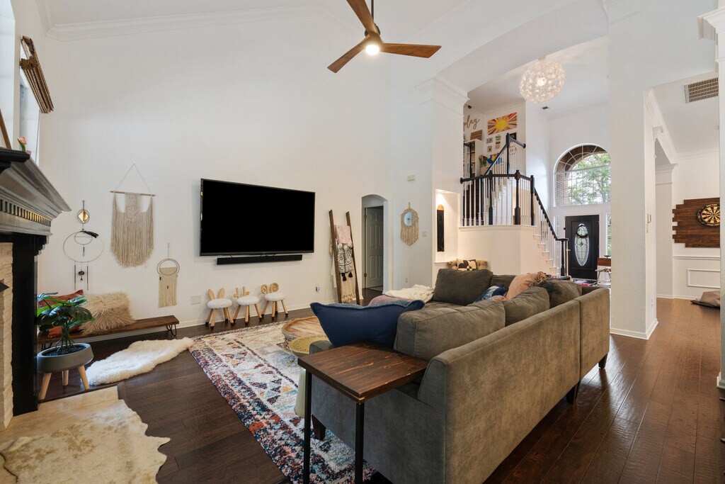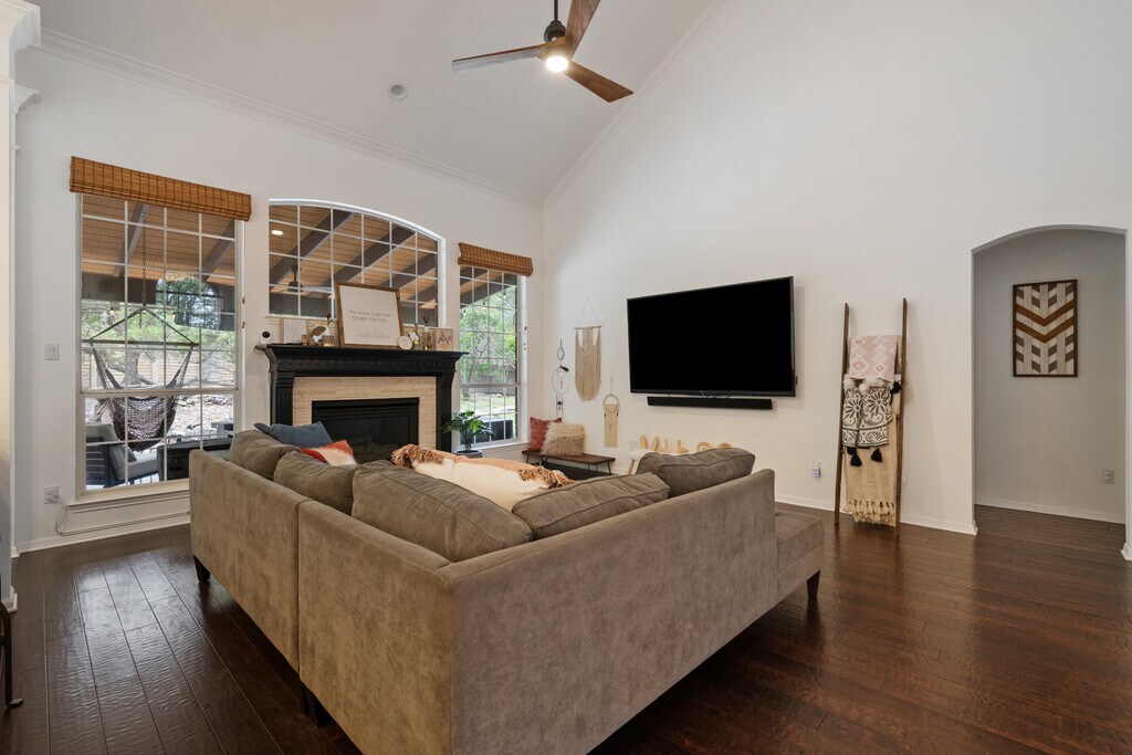 Highly sought River Place neighborhood is the ideal location, while nearby to the most desirable LISD schools (within 5 minute commute to all three schools) and just 5-10 minutes to multiple waterfront areas. Walk to the park, country club and to Austin's #1 nature trail all from this home bordered by Lake Austin while still near to downtown. This home is perfect for a family with kids. The upstairs loft, 1 bathroom, and the 2 bedrooms are decorated for kids. Downstairs is a spacious modern kitchen with a large island that flows into the living room. Next to the stairwell is a game room with darts and a pool table. A large master bedroom with an updated master bathroom and master closet are just past the living room. A guest bedroom and another full bathroom is also downstairs right across the game room. And a separate office or a guesthouse with a full bathroom is on the side of the house with it's own entrance. It's setup as an office and has a foldout bed. Perfect for Multi-generational Living or Professional Remote Work. House comes fully furnished! Central air, central heat, gas fireplace, deck, dishwasher, hardwood floors, stainless steel appliance, updated kitchen, updated bathrooms, washer dryer, whole house water filtration, big yard with kids playscape, and a fire pit. Is pet friendly. Please submit the form on this page or contact Michael at to learn more.