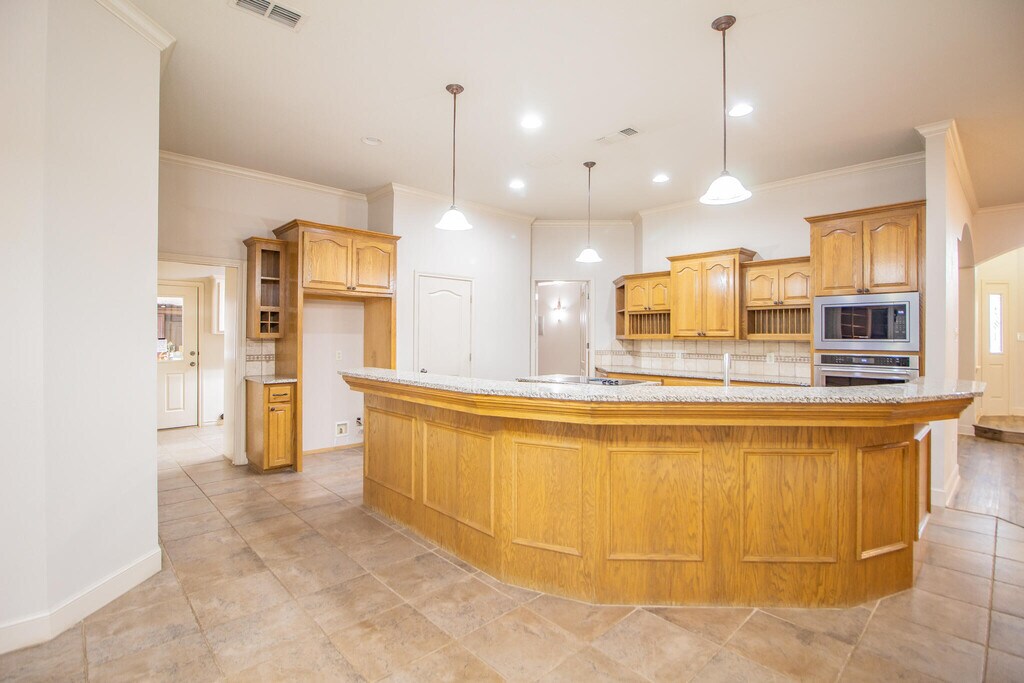 This stunning 3-bedroom,2-bathroom,3-car garage home in the desirable SW Lubbock neighborhood of Highland Oaks sits on over an acre of beautifully maintained land. The property features a spacious interior with a dedicated home theater perfect for movie nights,while the outside offers a massive backyard oasis with a pergola,outdoor kitchen,and koi pondâideal for entertaining and relaxing. The expansive 1,500-square-foot shop provides ample room for hobbies,storage,or a home-based business. Additional highlights include a 7,000-gallon water storage tank,a brand new 5-ton HVAC system for optimal comfort,and native landscaping that enhances the tranquil,private setting in this charming and modern neighborhood. Schedule your showing today!