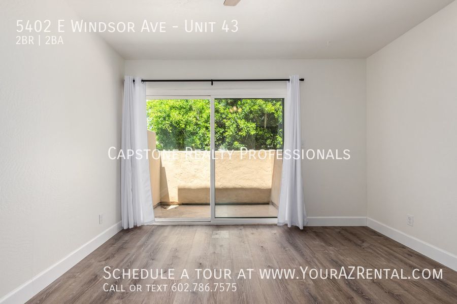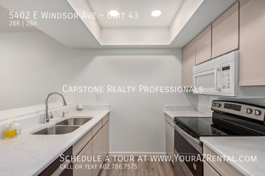 This well-maintained 2-bedroom, 2-bathroom condo with a versatile loft offers a fresh, modern feel in a prime Phoenix location near Papago Mountain. Recently updated with brand new paint throughout and renovated bathrooms, this home is truly move-in ready. Step inside to a bright, open layout with high ceilings, a neutral color palette, and warm wood-look flooring that flows seamlessly throughout the space. The kitchen is both functional and stylish, featuring ample white cabinetry, stainless steel appliances including a dishwasher, and a convenient pass-through window with a breakfast bar perfect for easy meal prep and entertaining. Key Features: Bright & Open Living Space: High ceilings and a light-filled layout create an inviting atmosphere. Updated Interiors: Fresh paint throughout and beautifully renovated bathrooms. Modern Kitchen: White cabinets, stainless steel appliances, and a breakfast bar for added convenience. Versatile Loft: Ideal for a home office, guest room, or additional living space. Private Outdoor Spaces: Both bedrooms feature their own private patios and mirrored closets for storage. In-Unit Laundry: Washer and dryer included for everyday ease. Convenient Parking: One assigned covered space plus ample guest and street parking. Community Amenities: Enjoy access to a sparkling community pool. Prime Phoenix Location Located just 5 minutes from Old Town Scottsdale, you’ll have quick access to top dining, shopping, and nightlife. With easy connectivity to major freeways (101, 51, 143, and 202), commuting around the Valley is a breeze. Outdoor enthusiasts will also love being close to Papago Park, hiking trails, and scenic desert views. Don’t miss this incredible opportunity to live in a stylish, well-located condo! Schedule your showing today and make this your next home. -- Monthly Fee: Resident Benefit Package $49.99 Security Deposit: Equal to one months rent Cleaning Deposit: $275.00 Pet Deposit: $200.00 per pet One Time Lease Administrative Fee: $150.00 Assigned Parking Carbon Monoxide Detectors Community Pool Dryer Laminate Flooring Loft Pets Landlord Approval Pool Non Heated Smoke Detectors Vinyl Plank Flooring Walk In Shower Washer