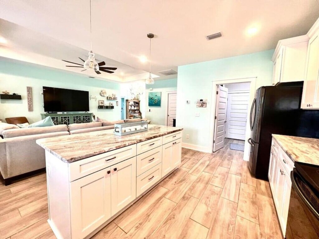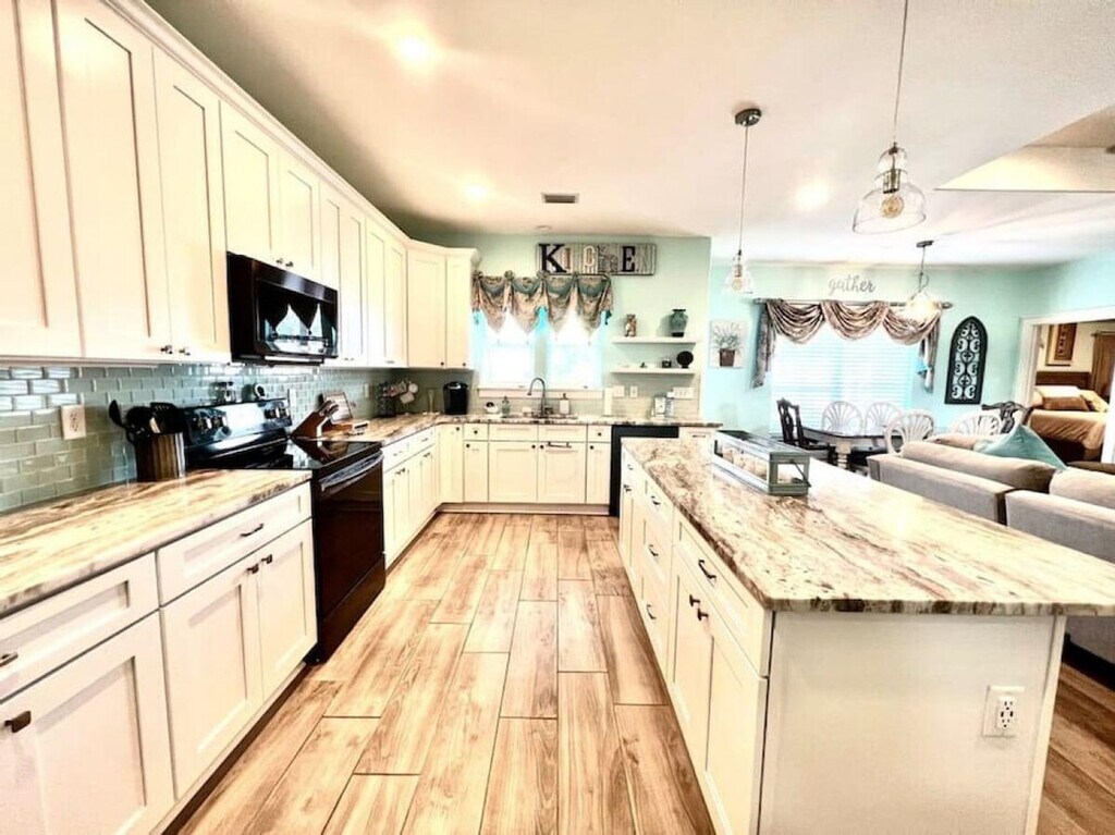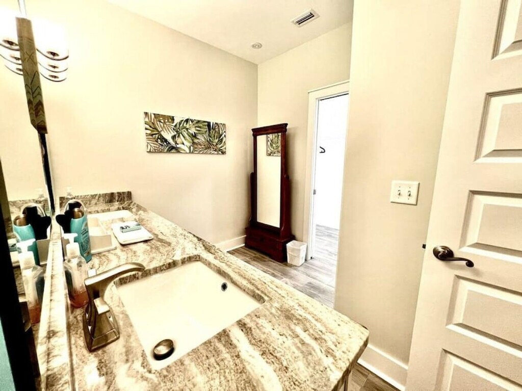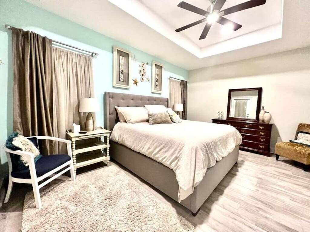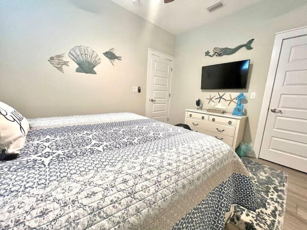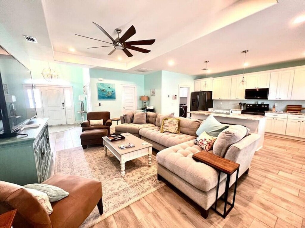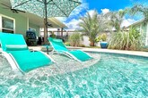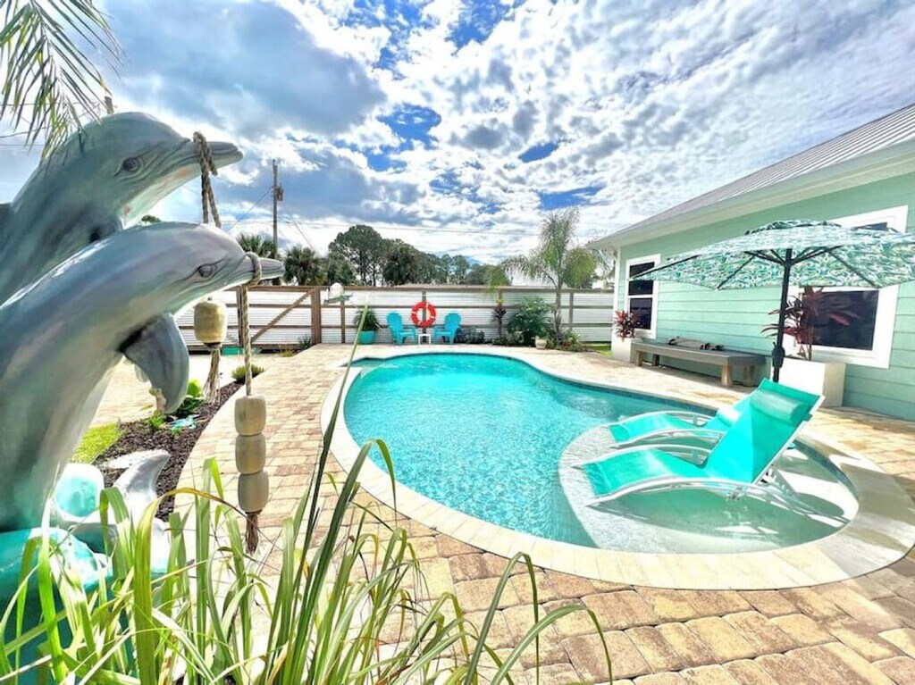 The advertised rate of $11,381/month is the lowest available price, based on a 1 month(s) stay with a move-in date of September 11, 2026. Rates vary depending on the duration of stay, season, and other parameters. For exact pricing and additional pricing components, please visit our website and enter your desired move-in and move-out dates. The rate is applicable when billed upfront; it can be higher if billed in multiple payments. You've found your dream vacation home! Feel at home in this spacious 3-bedroom, 2-bath beach house that sleeps 8 people and boasts luxury finishes and appliances throughout. There are no stairs in the house, and the master bathroom features a walk-in shower, perfect for those with limited range of motion. The open concept living and dining areas ensure that you and your guests will have plenty of room to rest, relax, and play! The backyard features a private pool, gas grill, and covered seating. A fully fenced yard provides great privacy. Bath towels are provided; please bring your own beach towels. A street legal golf cart is included for guest use. Up to two dogs of non-aggressive breeds and under 60 lbs each are allowed upon approval and payment of a $115 pet fee. Enjoy the peace and quiet of the neighborhood or spend the day shopping, dining, and enjoying the white sand beaches easily accessed by bike or golf cart. The home is a short walk from beach access and a public boat ramp with lagoon and gulf access. Local spots include St. Andrew's State Park, Wonderworks, Ripley's Believe it or Not Museum, Just Jump Trampoline Park, Dat Cajun Place, Liza's Kitchen, Finn's Island Style Grub & Barista Bar, Patches Pub, Diego's Burrito Factory, Paparazzi Pizza, Panama City Beach Winery, Gypsea Crepes, Sue's Thai Cafe, and Andy's Flour Power Cafe and Bakery. There is a strict 8-person capacity limit, and anyone exceeding this limit will be subject to immediate discontinuation of their reservation without refund. Please treat the property with care and respect. Please keep noise to a minimum after 10:00 pm. The booking guest must be at least 21 years of age and present throughout the entire stay! Please ensure the grill is clean before leaving. Security cameras are located in the front and back yards of the residence and inside the garage. There are no cameras in the living areas of the residence. There is also an alert on the back doors leading to the pool area as required. Guests must park vehicles in driveway spaces only. Communicate any property damage or maintenance needs to the property managers immediately. For fire or medical emergencies, first call 911 before notifying management. [SI]