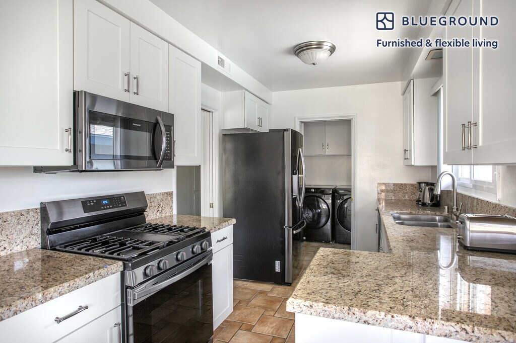 Show up and start living from day one in Ladera Heights with this charming two bedroom Blueground house. You’ll love coming home to this thoughtfully furnished, beautifully designed, and fully equipped Baldwin Hills home. (ID #LAX1140) The advertised rate of $3,090/month is the lowest available price, based on a 1 month(s) and 27 day(s) stay with a move-in date of January 15, 2026. If you’re looking for a 1-year stay, the rate is $3,480/month. Rates vary depending on the duration of stay, season, and other parameters. For exact pricing and additional pricing components, please visit our website and enter your desired move-in and move-out dates. The rate is applicable when billed upfront; it can be higher if billed in multiple payments. Brokers are welcome to reach out. Were you looking for an unfurnished lease? Try Blueground instead and upgrade from unfurnished to furnished living: - Furnished at rates comparable to unfurnished - No setup or furniture costs - save thousands - Move-in ready - save time, just bring your suitcase Designed with you in mind As with any Blueground house, you’ll find a thoughtfully designed space complete with beautiful furniture and a fully equipped kitchen in this two bedroom property. And, thanks to our superior quality mattresses, luxury linens, and towels, you can relax knowing you’ll always feel comfortably at home. When you’re ready for some fun, you can take in the Ladera Heights vibes or bring the entertainment to you with the premium wireless speaker or smart TV. This house also offers in-house laundry. Sleeping arrangements King Bed, 70.8in/180cm King Bed, 70.8in/180cm Amenities Building amenities unique to this two bedroom house include an on-site: - Dryer - Washing machine - Parking Arrival and ongoing support The entire house is yours to enjoy! Throughout your stay, you’ll have access to our Client Experience team through the Blueground App. You can schedule additional cleanings, submit maintenance requests, and view our neighborhood recommendations with just a few taps. We’ll share all details upon confirmation of your stay. Other things to note This Blueground house has flexible lease options, allowing you to book it for one month, a year, or more. Parking is offered based on availability and is subject to a fee. Please keep in mind that this is a walk up building. We take great pride in ensuring every photo displayed is shot in our own units with our actual furnishings. That said, we regularly refresh our decor and furniture arrangement, which may differ from what’s pictured. [SI]
