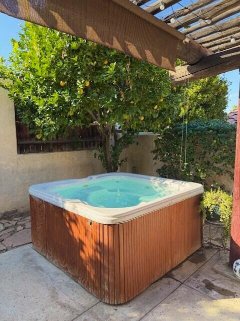 Welcome to this custom-built Santa Fe-style single family home located high in the desirable La Quinta Cove. Offering 4 bedrooms,2 baths,and approximately 1760 sq ft of living space,this residence features an open floor plan designed for comfort and style. The living room welcomes you with soaring ceilings,Saltillo tile floors,a cozy wood burning fireplace,and a built-in wet bar-perfect for entertaining. The gourmet kitchen has been thoughtfully remodeled with custom wood cabinetry,slab granite countertops,a stainless-steel sink and appliances,including a wine refrigerator. The backyard provides a private and tranquil retreat,highlighted by an above-ground hot tub- ideal for relaxing in peaceful seclusion. Inside the primary suite features tall ceilings and sliding glass doors that open to the rear patio. A permitted bonus room extends from the suite and is being used 4th bedroom or could also be an office space. This home is available furnished for long term or seasonally. Rates vary dependent on length of stay. The Fred Wolff Nature Preserve as well as the Bear Creek Trail head and the Cove Oasis Trailhead are right nearby for hiking and biking enjoyment. Old Town La Quinta is a charming desert village that blends historic character with modern sophistication. Known for its adobe-style architecture and scenic mountain backdrop,the area offers boutique shopping,art galleries,sidewalk cafes,acclaimed dining-all within a walkable,village-style setting. Community events,farmers markets,and live music create a vibrant yet relaxed atmosphere that captures the essence of desert living. Home has just been completely painted on the interior. Attached video tour of the home. MLS # 219140690